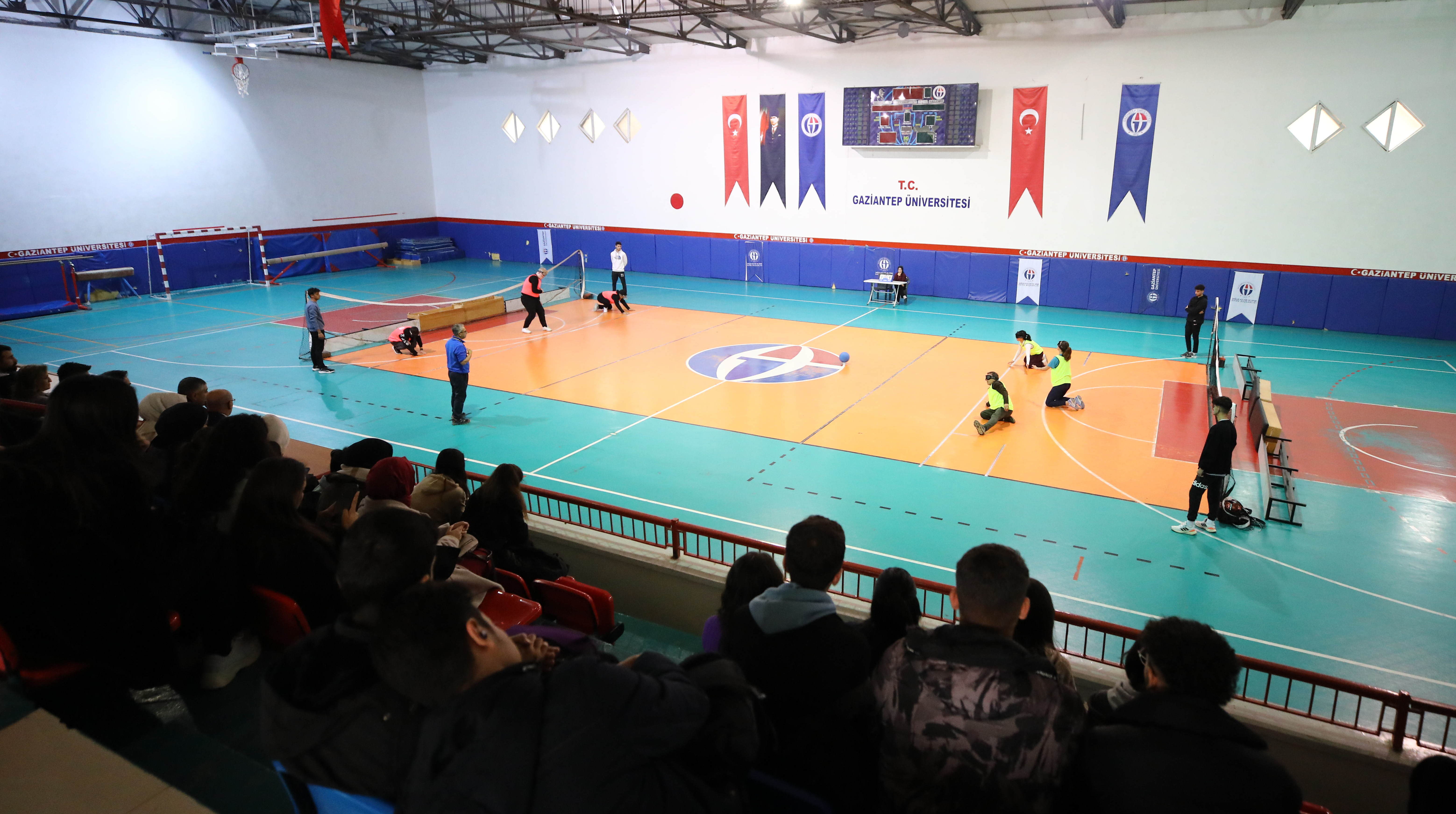 Gaziantep Üniversitesi (GAÜN) Kapalı Spor Salonunda gerçekleştirilen Goalball maçında engelli bireylerle engeli olmayanlar aynı sahada buluştu.