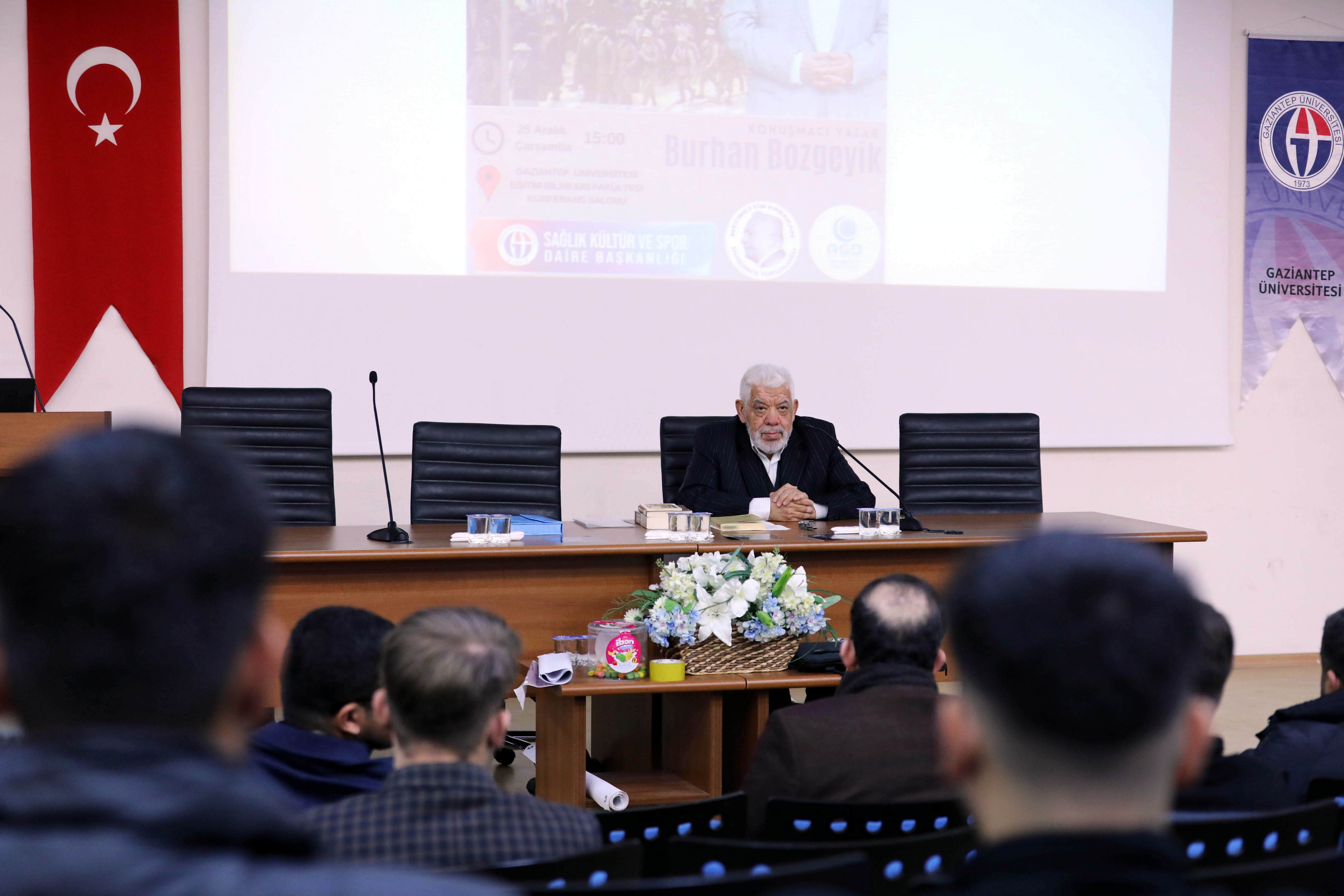 Konferansa konuşmacı olarak katılan Yazar Burhan Bozgeyik, Gaziantep Savunması sürecinde önemli rol oynayan kahramanları, halkın gösterdiği direnişi ve şehrin bağımsızlık mücadelesindeki destansı kahramanlıklarını ele aldı. Bozgeyik, sadece askeri liderlerin değil, halkın her kesiminden bireylerin de bu süreçteki kritik katkılarını vurguladı.