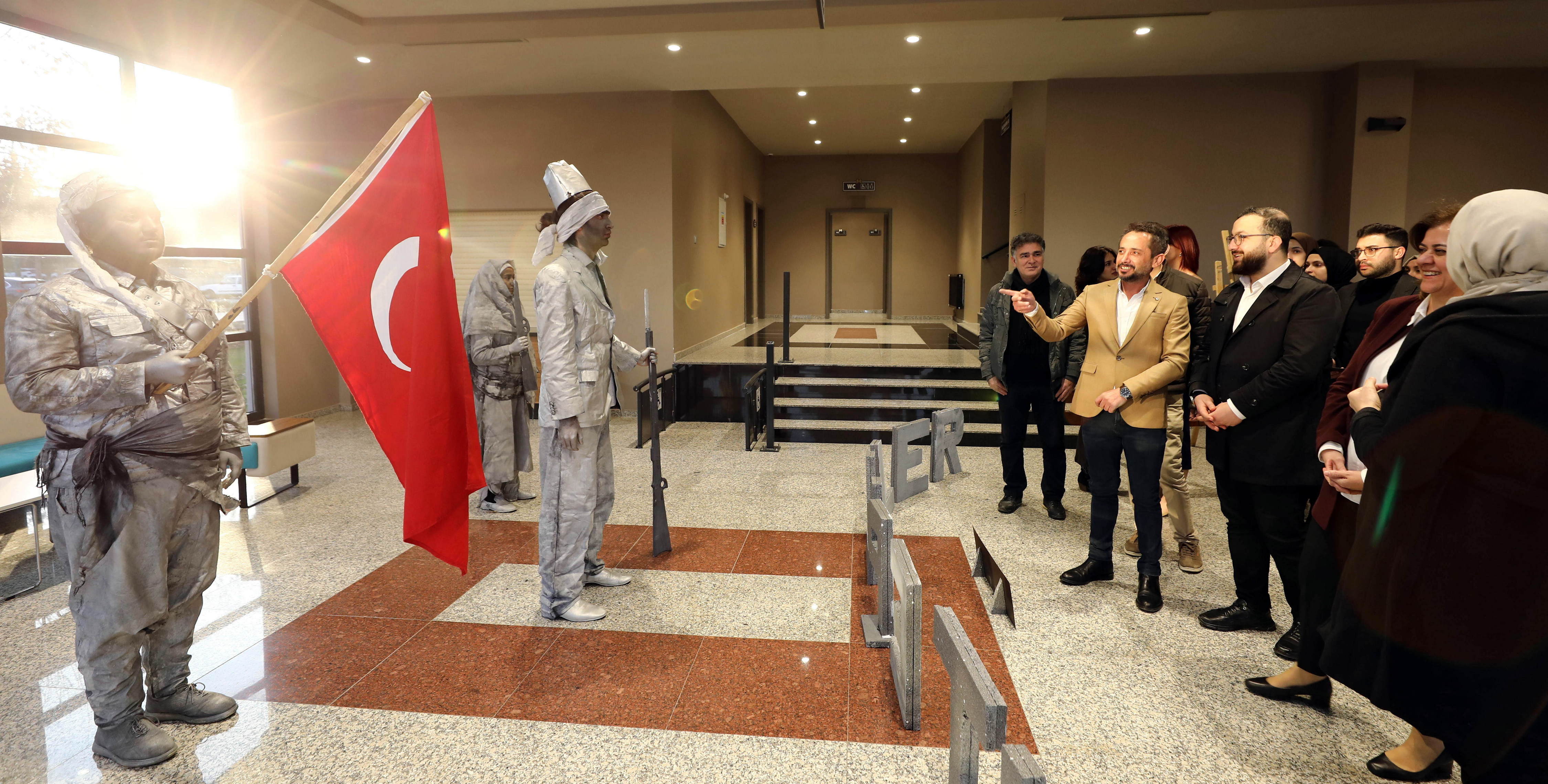 Gaziantep’in düşman işgalinden kurtuluşunun 103.yıl dönümü anısına düzenlenen, açılışını Gaziantep Büyükşehir Belediyesi Başkan Vekili Feray Yılmaz’ın yaptığı sergide Antep Savunmasını ve Antep’in düşman işgalinden kurtuluşunu anlatan karakalem çalışmaları ve canlı heykel performansları yer aldı.