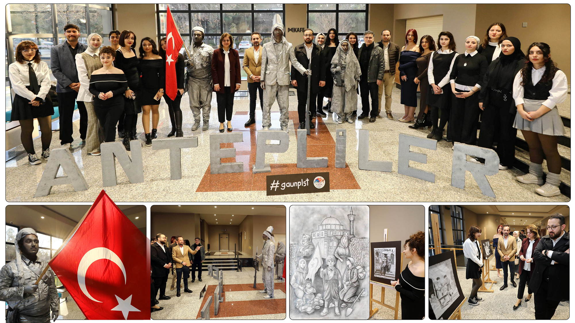 Gaziantep Üniversitesi (GAÜN) Plastik Sanatlar Topluluğu tarafından, 25 Aralık Gaziantep’in Kurtuluşu temasıyla düzenlenen “6. Geleneksel Canlı Heykel Performansı ve Karakalem Sergisi” GAÜN Atatürk Kültür Sahnesi’nde açıldı.