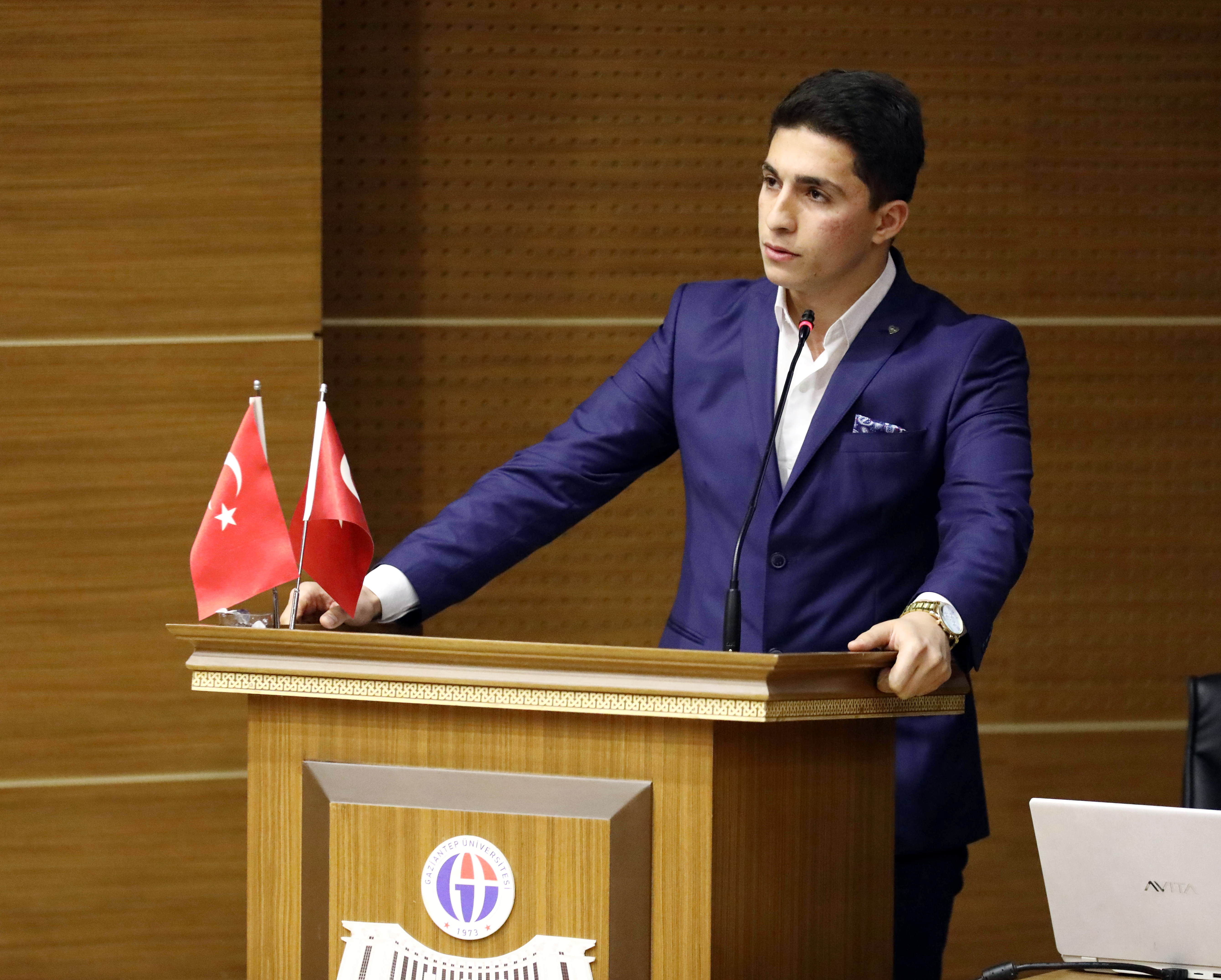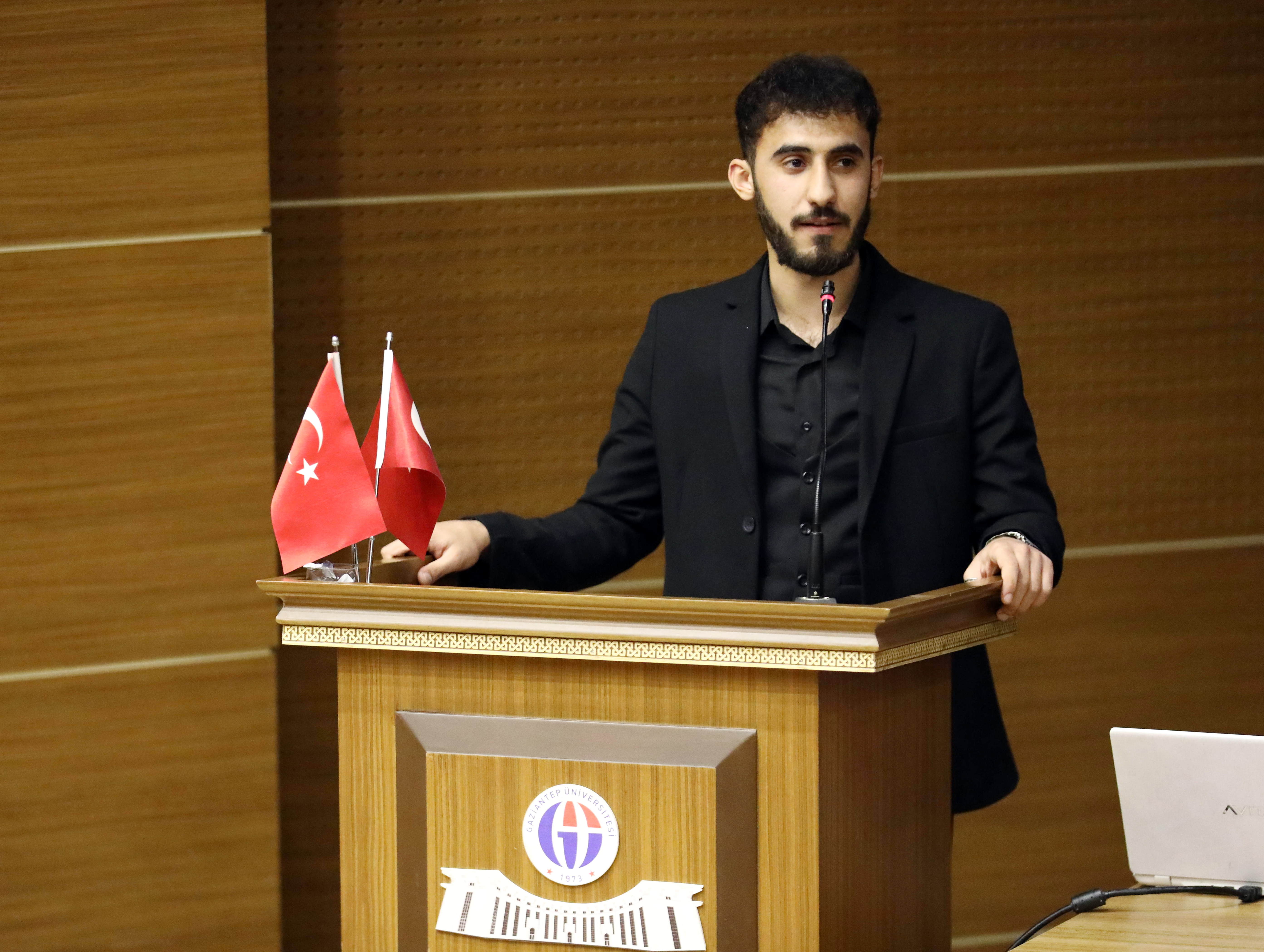 GAÜN Hukuk Fakültesi öğrencisi Buhari Manaf, teknolojinin toplum üzerine etkilerine dikkat çektiği konuşmasında, dinlenilen müziklerin bile insanlar üzerinde çok önemli etkileri olduğunu söyledi. Manaf, bireysel ve toplumsal çevremizde gelişen sorunlara karşı önce bir insan sonra da bir Müslüman olarak sessiz kalınmaması gerektiğini sözlerine ekledi.
