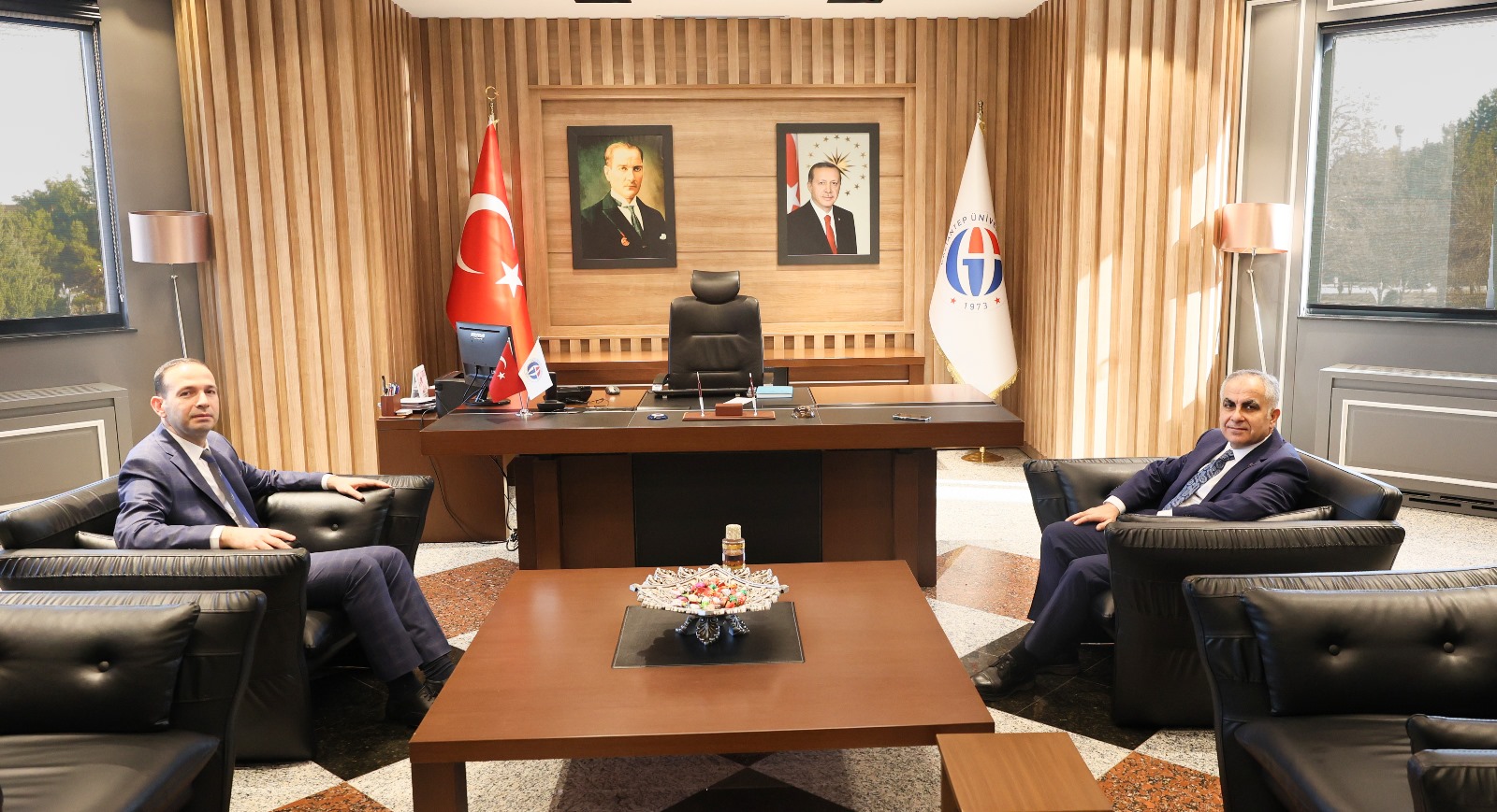 İslahiye Kaymakamı Mehmet Soylu ve İslahiye Belediye Başkanı Kemal Vural, Gaziantep Üniversitesi (GAÜN) Rektörü Prof. Dr. Sait Mesut Doğan’a hayırlı olsun ziyaretinde bulundu. Kaymakam Soylu ve Başkan Vural, Rektör Doğan’a yeni görevinde başarılar dileyerek, İslahiye’nin eğitim, kültür ve sosyal alandaki ihtiyaçlarının karşılanması noktasında üniversite ile iş birliği yapmaya hazır olduklarını ifade etti. Rektör Doğan, nazik ziyaretlerinden dolayı Soylu ve Vural’a…
