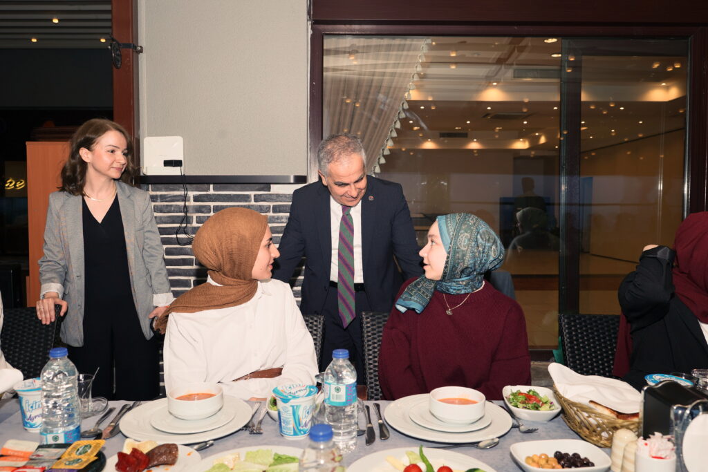 Rektör Doğan, iftar programı boyunca öğrencilerle yakından ilgilenerek onların taleplerini ve isteklerini dinledi.