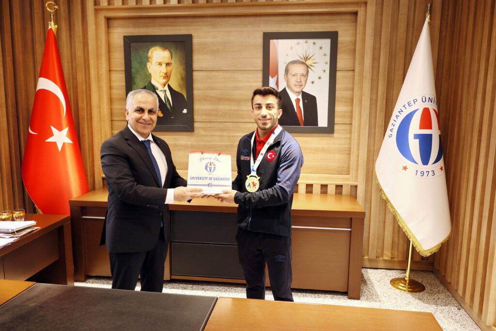 Gaziantep Üniversitesi (GAÜN) Rektörü Prof. Dr. Sait Mesut Doğan, Moldova’nın başkenti Kişinev’de düzenlenen Avrupa Halter Şampiyonası’nda altın madalya kazanan GAÜN Spor Bilimleri Fakültesi öğrencisi Harun Algül’ü makamında ağırladı.