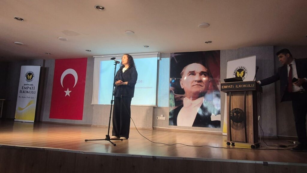 Gaziantep Üniversitesi (GAÜN) Eğitim Fakültesi tarafından hazırlanan ve Gaziantep İl Milli Eğitim Müdürlüğü tarafından onaylanan “Sivil Katılım Karar Süreçlerinde Ben de Varım” başlıklı sunum, Dr. Öğr. Üyesi Barış Kalender tarafından, İl Milli Eğitim Müdürlüğü’nün belirlediği pilot okullardan biri olan Şehitkamil Empati İlkokulu’nda gerçekleştirildi.