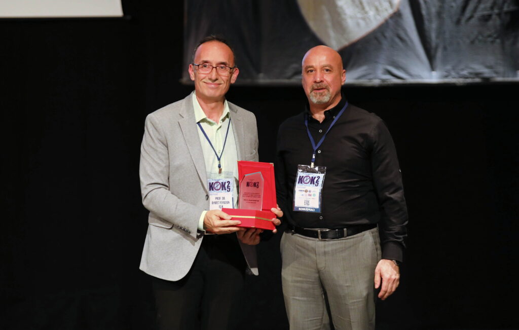 Konuşmaların ardından, GAÜN Kök Hücre Topluluğu Akademik Danışmanı Doç. Dr. Serdar Öztuzcu tarafından Prof. Dr. Ahmet Ferudun Işık’a günün anısına plaket takdim edildi.