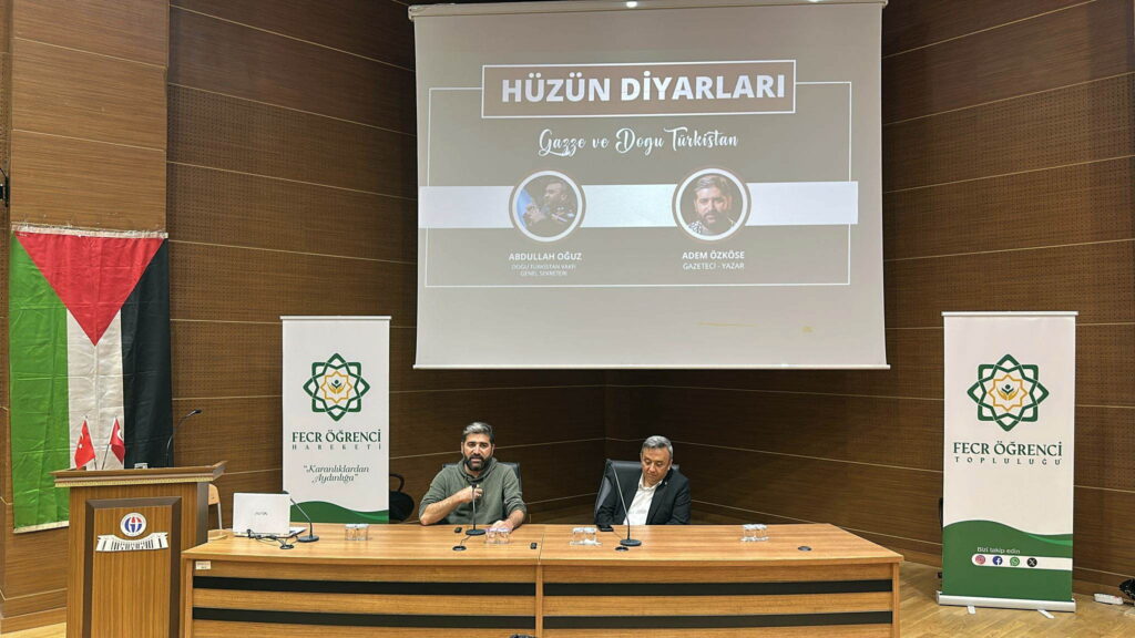 Konferansta Gazze ve Doğu Türkistan’da yaşanan insan hakları ihlalleri, bölge halklarının maruz kaldığı zulümler ve bu coğrafyalarda yaşanan insani krizler ele alındı. Adem Özköse, gazetecilik tecrübeleriyle Filistin’de tanıklık ettiği olayları katılımcılarla paylaşırken; Abdullah Oğuz ise Doğu Türkistan’daki güncel durum hakkında bilgi verdi ve yaşanan baskılara dikkat çekti.