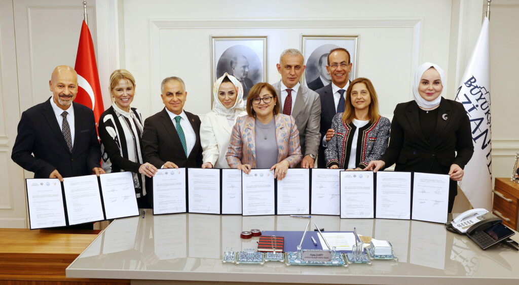 “Haydi Kızlar Spora” Projesi kapsamında düzenlenen protokol imza töreni, Gaziantep Büyükşehir Belediyesi ev sahipliğinde gerçekleştirildi. Törene; Türkiye Futbol Federasyonu Başkanı İbrahim Ethem Hacıosmanoğlu, Gaziantep Büyükşehir Belediye Başkanı Fatma Şahin, GAÜN Rektörü Prof. Dr. Sait Mesut Doğan, Maher Holding Yönetim Kurulu Başkanı Mahmut Erdemoğlu ve eşi Mine Erdemoğlu, Uluslararası Kalkınma, Toplum ve Düşünce Derneği (KATODER) Yönetim Kurulu Başkanı Sabiha Doğan ile Merinos Voleybol Spor Kulübü Başkanı Ali Atalar katıldı.