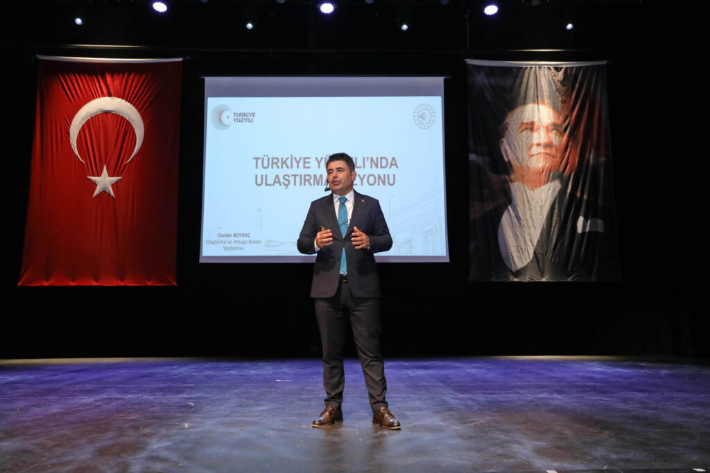 Etkinlik çerçevesinde düzenlenen “Türkiye Yüzyılı’nda Ulaştırma Vizyonu” başlıklı konferansta konuşan Bakan Yardımcısı Boyraz, ulaştırma ve altyapı alanında son yıllarda hayata geçirilen yapısal dönüşümleri, stratejik yatırımları ve geleceğe yönelik vizyonu paylaştı. Kara, hava, deniz ve demiryolu taşımacılığına yönelik projeleri detaylandıran Boyraz, Türkiye’nin bölgesel ve küresel ölçekte lojistik merkez olma hedefine dikkat çekti.