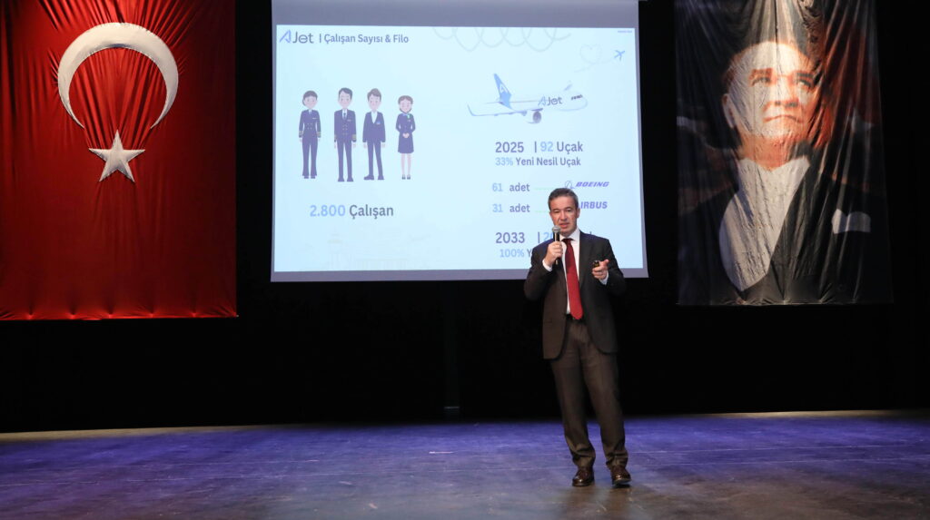 Havayolu taşımacılığı alanındaki deneyimlerini gençlerle paylaşan Sarp, öğrencilere kariyer planlaması konusunda önerilerde bulundu. Türkiye’nin havacılık sektöründeki gelişmeleri ve AJet’in vizyonu hakkında bilgi veren Sarp, sektördeki fırsatlara da dikkat çekti.