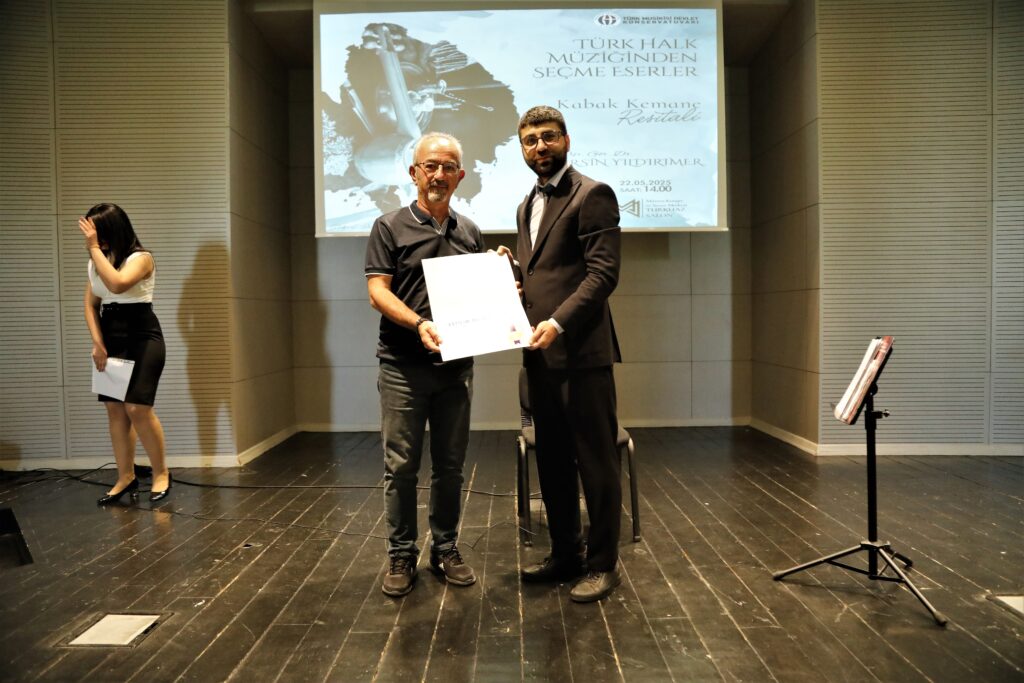 Yoğun ilgi gören resital sonunda, GAÜN TMDK Müdür Yardımcısı Yusuf Özbaş tarafından Dr. Yıldırımer’e teşekkür belgesi takdim edildi.