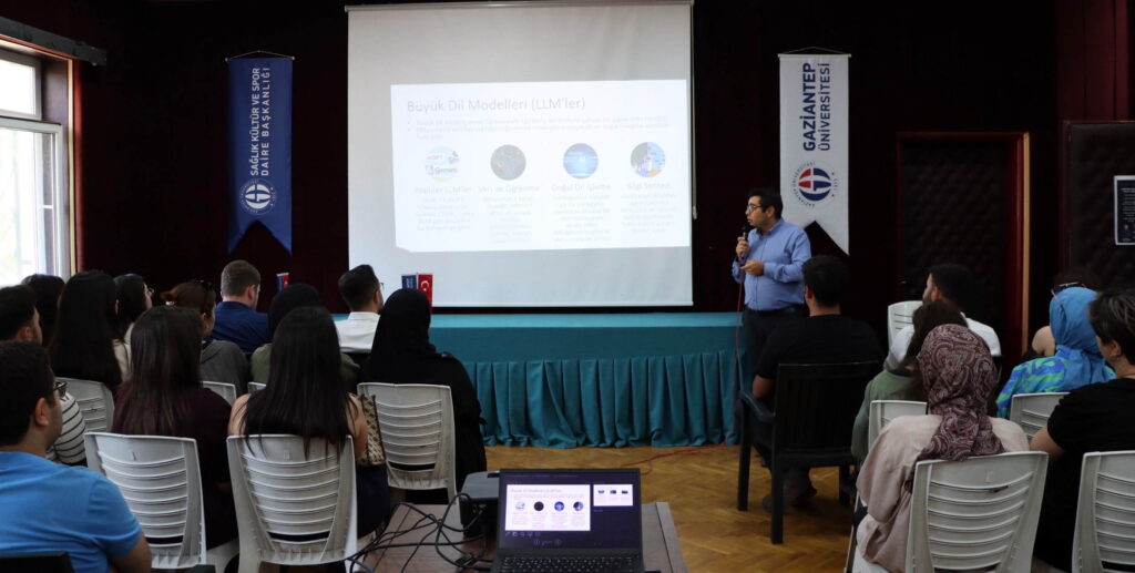 Gaziantep Üniversitesi (GAÜN) Kariyer Topluluğu tarafından düzenlenen ve İşletme Bölümü Dr. Öğr. Üyesi Mehmet Fatih Sert’in konuşmacı olarak katıldığı “Kariyer Yolculuğunda Yapay Zekânın Yeri” konferansı, öğrenciler ve akademisyenlerin yoğun katılımıyla gerçekleştirildi.