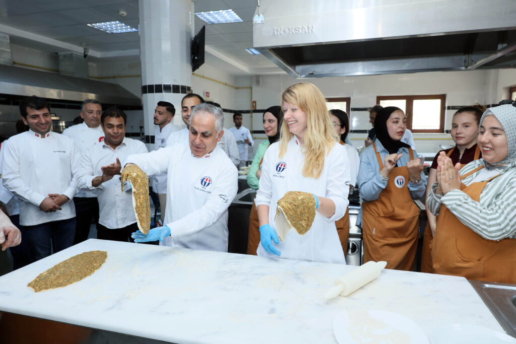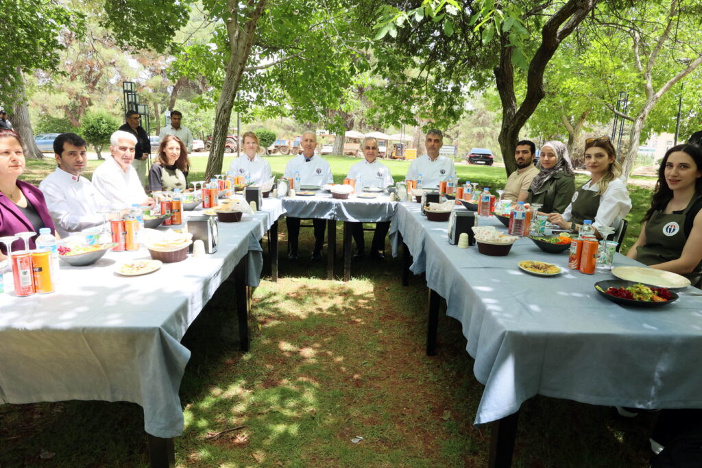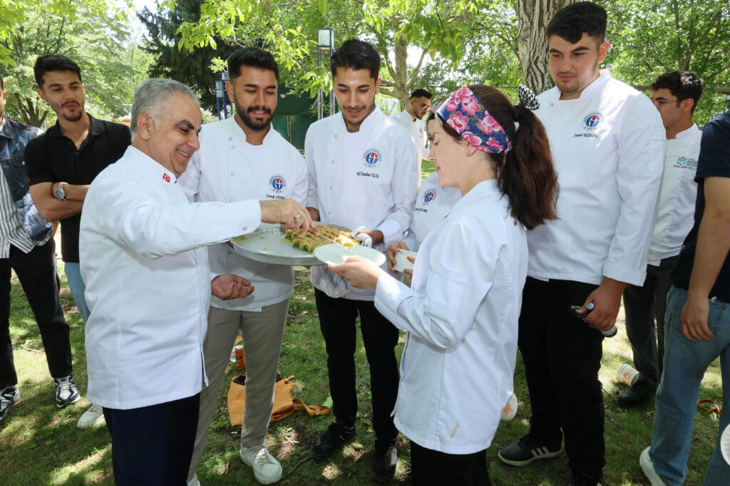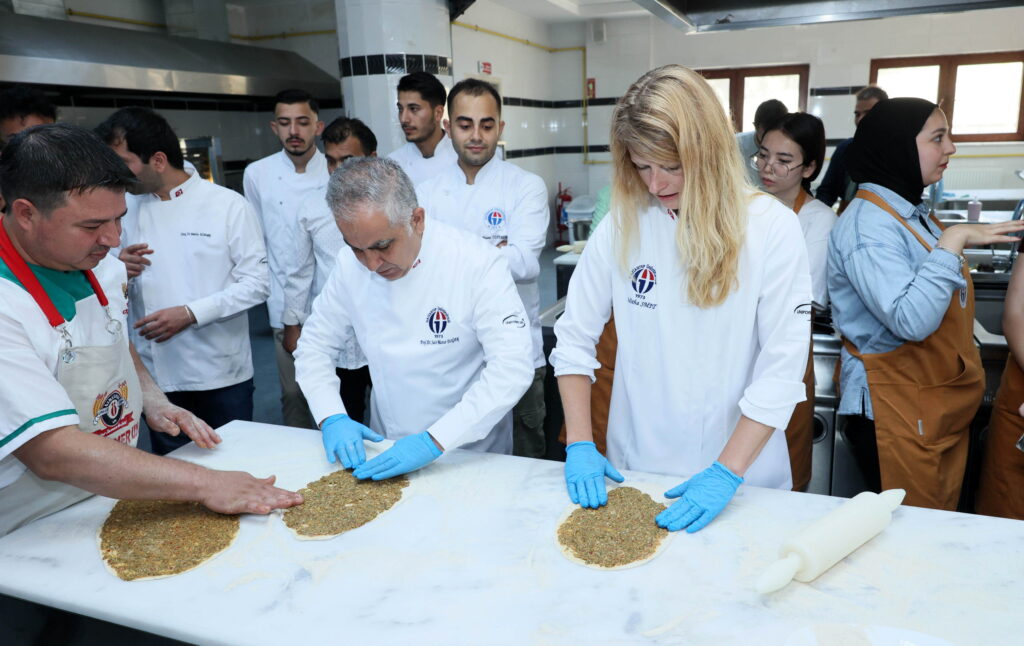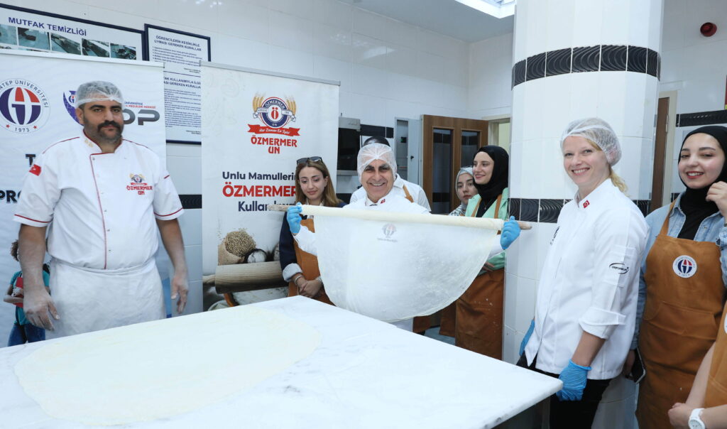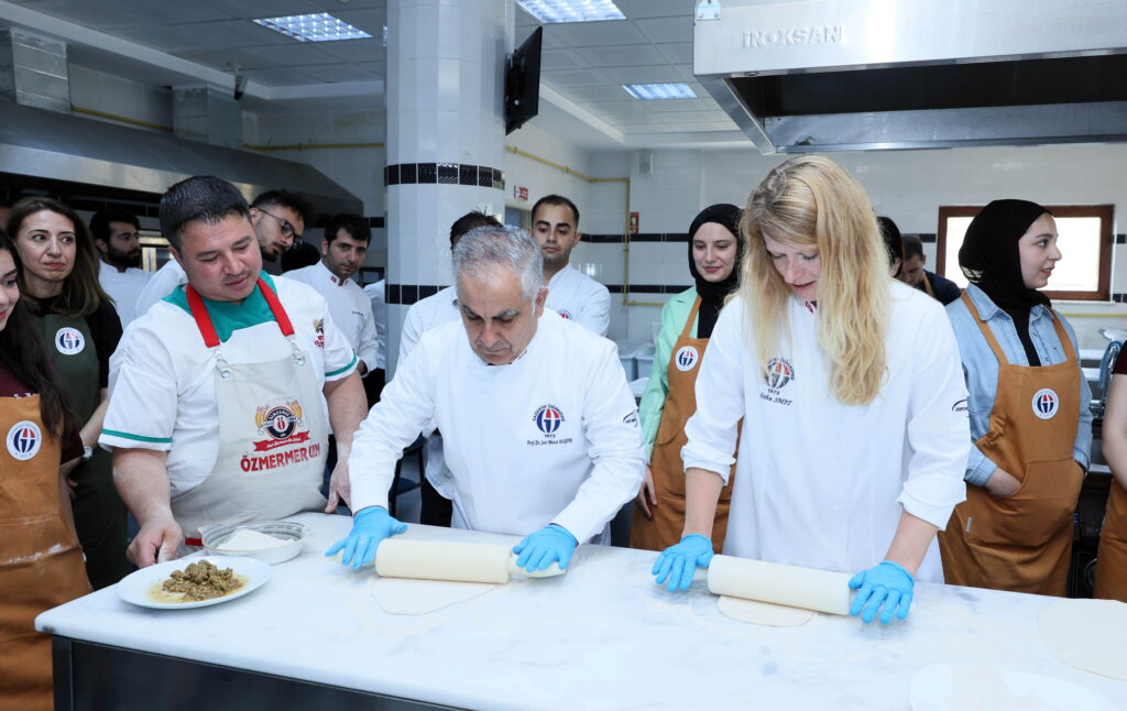 GAÜN Turizm Fakültesi Gastronomi ve Mutfak Sanatları Bölümü’ne bağlı uygulamalı mutfakta gerçekleştirilen etkinlikte Rektör Doğan, uluslararası öğrencilerle birlikte lahmacun yaptı, baklava açtı. Hazırlanan yemekler, katılımcılar tarafından birlikte yenildi.