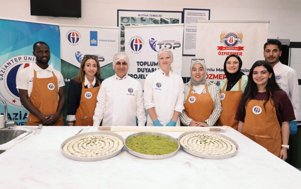 Gaziantep Üniversitesi (GAÜN) Toplumsal Duyarlılık Projeleri Merkezi (TDP) tarafından düzenlenen “Gaziantep Mutfağında Kültürel Buluşma” etkinliğinde, GAÜN Rektörü Prof. Dr. Sait Mesut Doğan, uluslararası öğrencilerle bir araya gelerek geleneksel yemekler hazırladı.