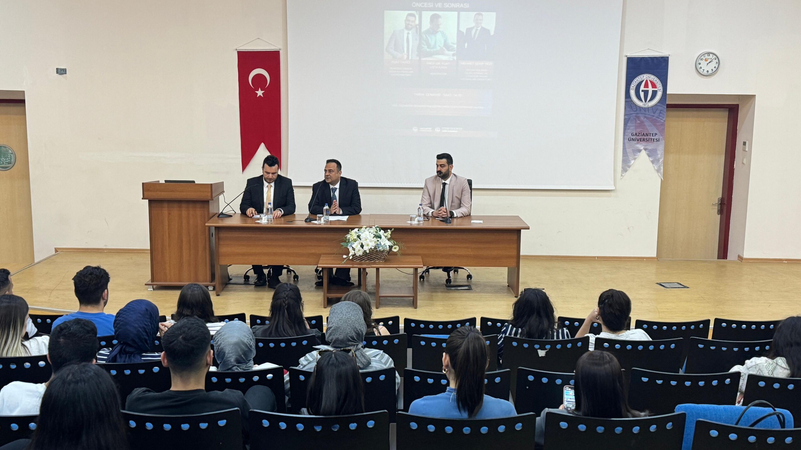 Gaziantep Üniversitesi Medya ve İletişim Topluluğu tarafından düzenlenen “İş Başvurusu İletişimi Öncesi ve Sonrası” başlıklı konferans, Eğitim Fakültesi Konferans Salonu’nda gerçekleştirildi. Burteks Group İnsan Kaynakları Koordinatörü Fuat Yaycı ve Akcan Holding İş Geliştirme ve Stratejik İnsan Kaynakları Direktörü Mehmet Şekip Yiğit’in konuşmacı olarak katıldığı etkinliğin moderatörlüğünü Prof. Dr. Fuat Ustakara yaptı. Konferansta, iş başvurusu süreçlerinde dikkat edilmesi gereken noktalar, mülakat…