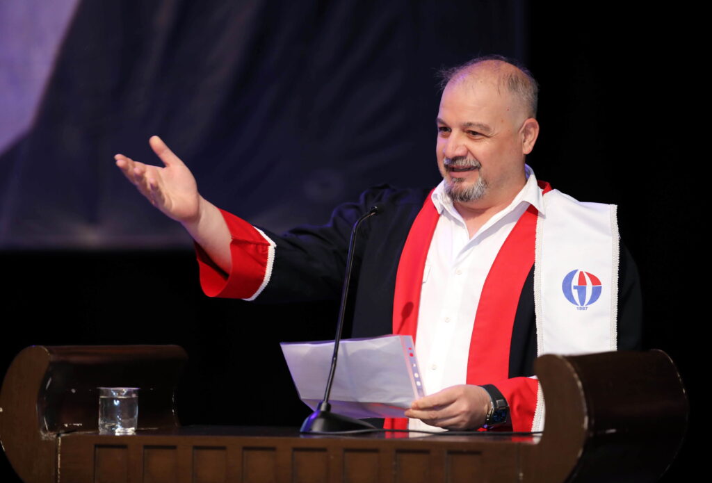 GAÜN Atatürk Kültür Sahnesi’nde gerçekleştirilen mezuniyet töreninin açılışında konuşan Teknik Bilimler Meslek Yüksekokulu Müdürü Prof. Dr. Hüseyin Bozkurt, öğrencilerin iki yıl süren zorlu bir eğitim sürecini başarıyla tamamladıklarını belirterek, mezuniyetlerini kutladı.Prof. Dr. Bozkurt konuşmasının devamında, “Mezun olurken sizlere anahtar olarak diploma veriyoruz. Bu anahtarı kullanmak sizin elinizde. Bu diploma ile sizleri aranan elemanlar olarak yetiştirdik, başarılı olacağınızdan eminiz ancak siz de kendinize güvenin ve gayret edin.” şeklinde konuştu.