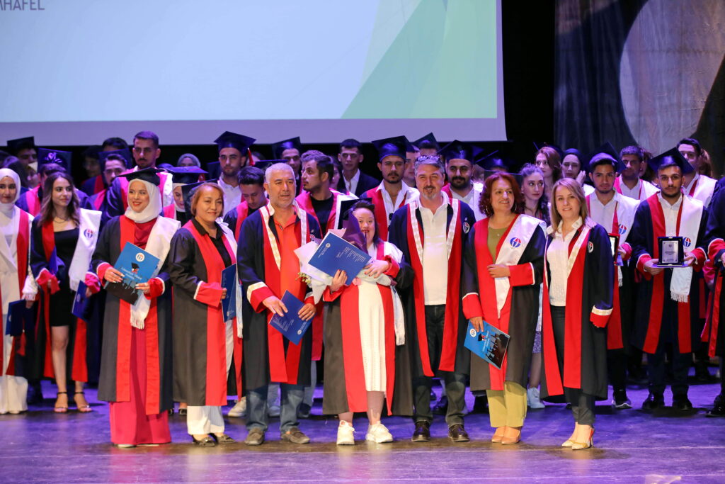 Tören, dereceye giren ve mezun olan öğrencilere öğretim üyeleri tarafından diploma ve hediyelerinin verilmesi sonrasında öğrencilerin coşkuyla keplerini havaya atmasıyla sona erdi.