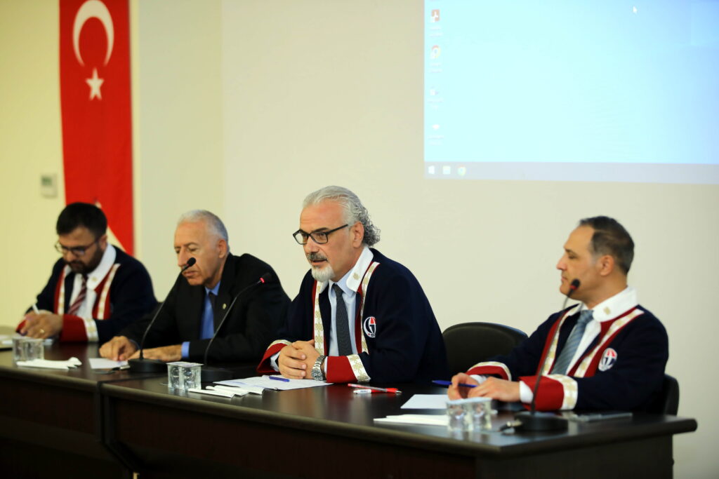 Toplantıda konuşan Mühendislik Fakültesi Dekanı Prof. Dr. Mustafa Bayram, daha önceki akademik kurul toplantılarında araştırma-geliştirme (Ar-Ge) performanslarının detaylı şekilde değerlendirildiğini hatırlatarak, bu toplantıda odak noktasının eğitim-öğretim ve öğrenci olduğunu vurguladı. Bayram, “Eğitimde ve Ar-Ge’de bulunduğumuz seviyenin daha yukarısına çıkmalıyız. Son yıllarda atılan adımlarla fakültemize bağlı Mühendislik Bölümlerinin tercih ve doluluk oranı artırılmıştır. Pek çok üniversitede mühendislik bölümleri kontenjanlarını dolduramaz iken, GAÜN Mühendislik Fakültesi bölümleri tercih edilmiş ve doluluklarını tamamlamıştır. Sürekli yenilenme ve gelişim hedefi ile son üç yılda verilen derslerin başarı ortalamaları ve öğrenci değerlendirme notları analiz edilmektedir. Bu sayede öğrenci odaklı ve akredistasyona uygun müfredat geliştirmelerine de devam edilecektir. Elde edilen veriler, bölümlerdeki Ölçme ve Değerlendirme Komisyonları tarafından değerlendirilecek ve bu doğrultuda somut adımlar atılacaktır.” dedi.