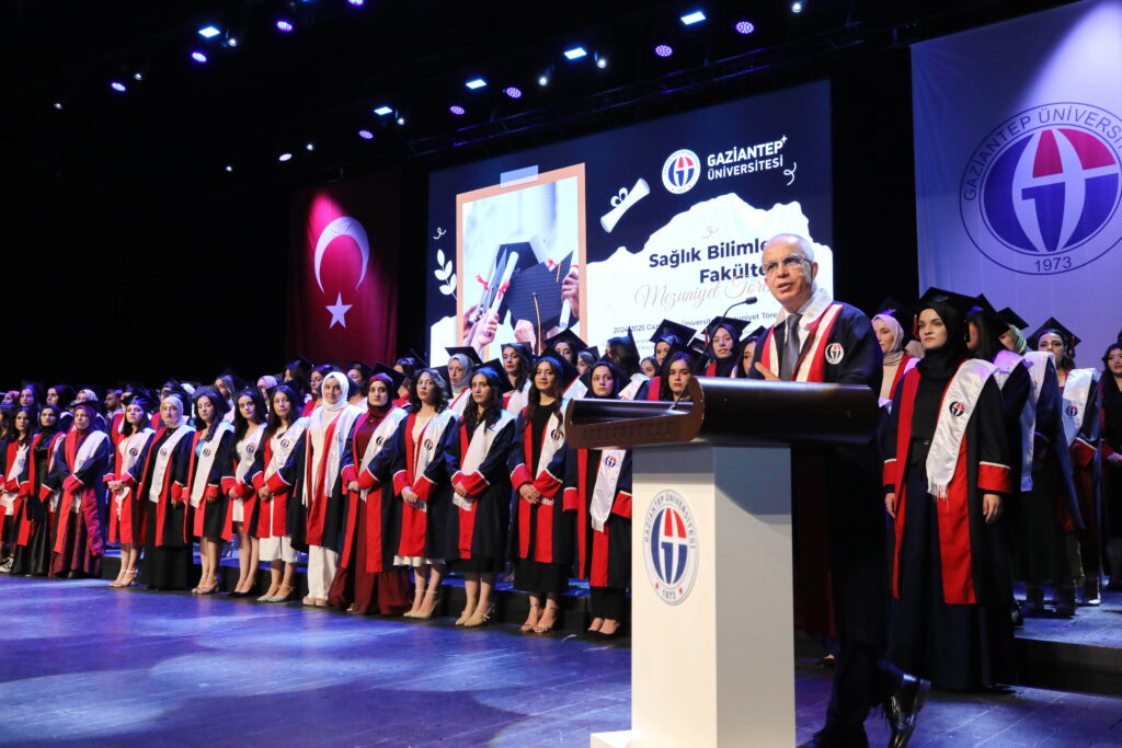 Gaziantep Üniversitesi (GAÜN) Sağlık Bilimleri Fakültesi 2024-2025 eğitim-öğretim yılı mezuniyet töreni, GAÜN Mavera Kongre ve Sanat Merkezi’nde büyük bir coşku ve gururla gerçekleştirildi. Törende ebelik ve hemşirelik bölümlerinden mezun olan öğrenciler diplomalarını alarak meslek hayatına ilk adımlarını attı.