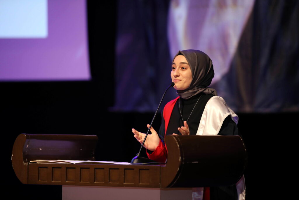 Mezunlar adına konuşan Gastronomi ve Mutfak Sanatları Bölüm Birincisi Medine Özdemir ise duygu ve düşüncelerini şu sözlerle paylaştı: “Gaziantep Üniversitesi bana sadece mesleki bilgi kazandırmadı. Bana hayatta karşılaşacağım her yanlış ölçüye karşı dengeyi nasıl bulacağımı da öğretti. Bir tabağın hazırlanmasından ziyade hayata nasıl hazırlanılması gerektiğini anlattı.”