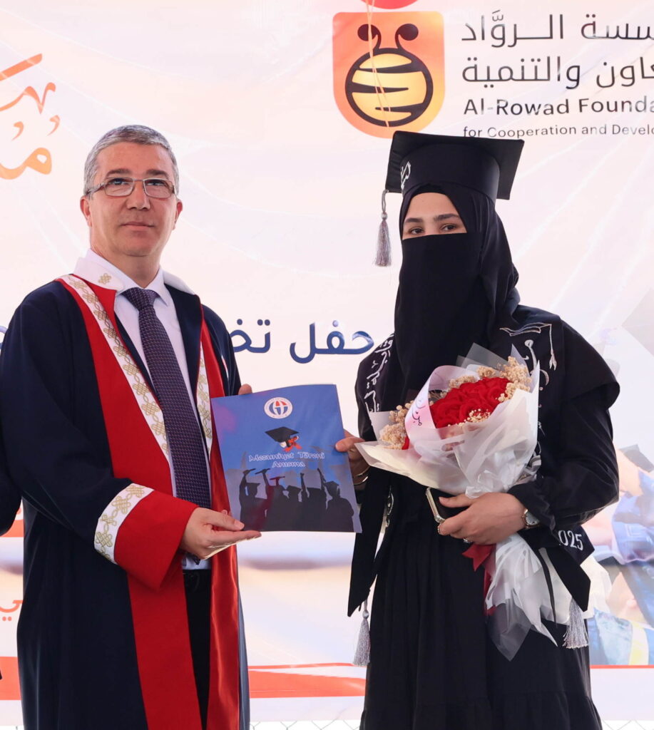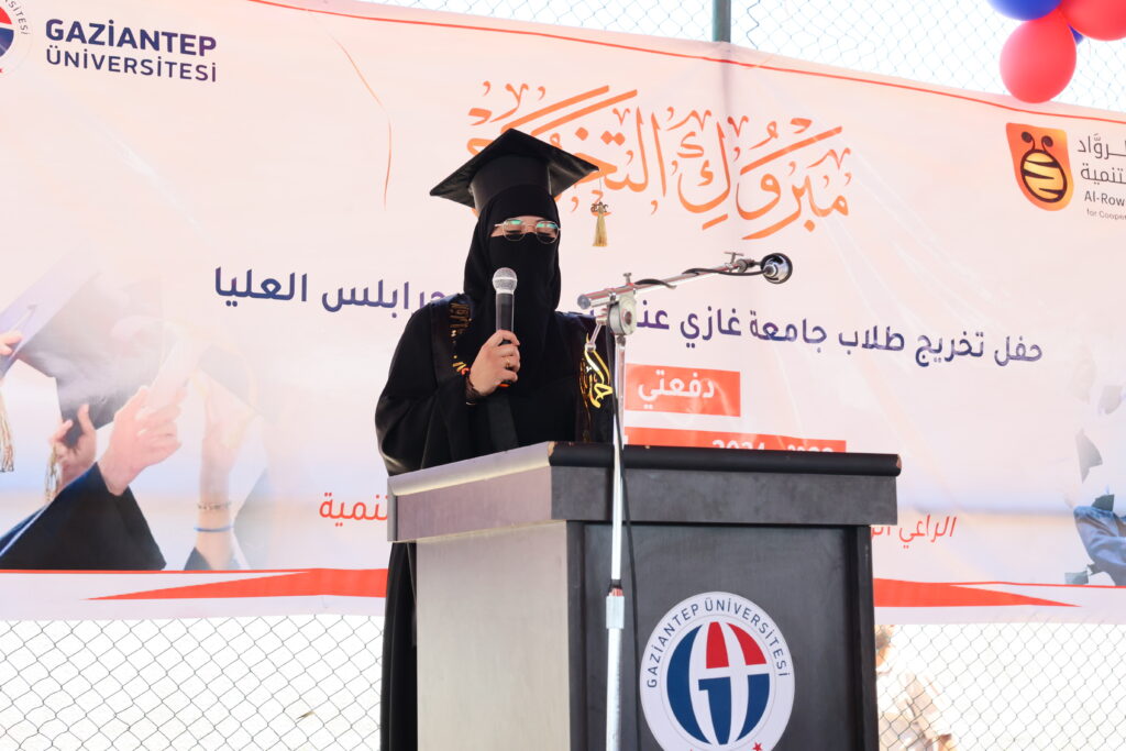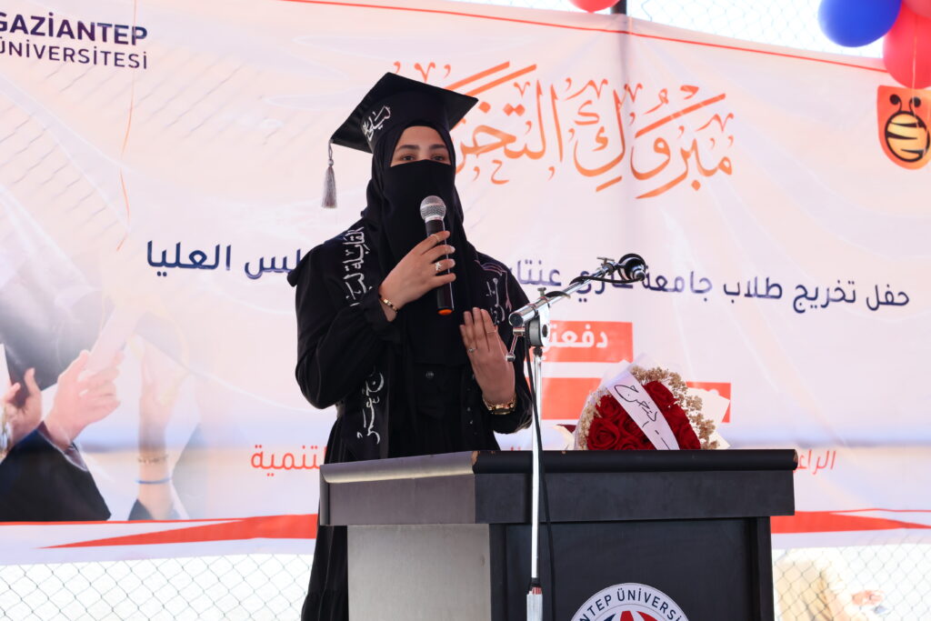 Mezunlar adına konuşma yapan Yüksekokul birincisi Layla Alhaj Omar, mezun olmanın gururunu yaşadıklarını ifade ederek, “Bizlere yol gösteren tüm hocalarımıza ve desteklerini esirgemeyen ailelerimize teşekkür ederim.”dedi.