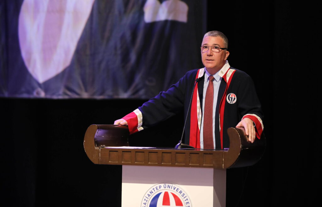 Atatürk Kültür Sahnesi’nde gerçekleştirilen mezuniyet töreninin açılışında konuşan GAÜN Genel Sekreteri Prof. Dr. Taner Akçacı, mezun öğrencilere üniversiteyle bağlarını Mezun Bilgi Sistemi üzerinden sürdürmeleri çağrısında bulundu. Prof. Dr. Akçacı, konuşmasının devamında, “Hayatta bazı idealler öyle değerlidir ki o uğurda yenilmek bile zafer sayılır. Bilginizle, görgünüzle aldığınız eğitimlerle çok güzel yerlere geleceğinize inanıyorum, sizlere güveniyorum.” dedi.
