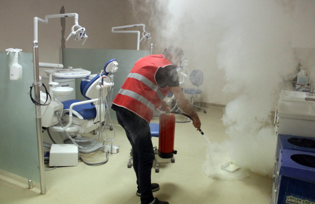 Gaziantep Üniversitesi (GAÜN) Diş Hekimliği Fakültesi Hastanesi’nde her yıl düzenlenen Hastane Afet ve Acil Durum Planı Tatbikatı, bu yıl da gerçeğini aratmayan görüntülere sahne oldu. Tatbikat kapsamında senaryo gereği deprem meydana geldi ve hastane içerisinde küçük çaplı bir yangın çıktı. Tahliye sırasında iki hasta yaralandı.
