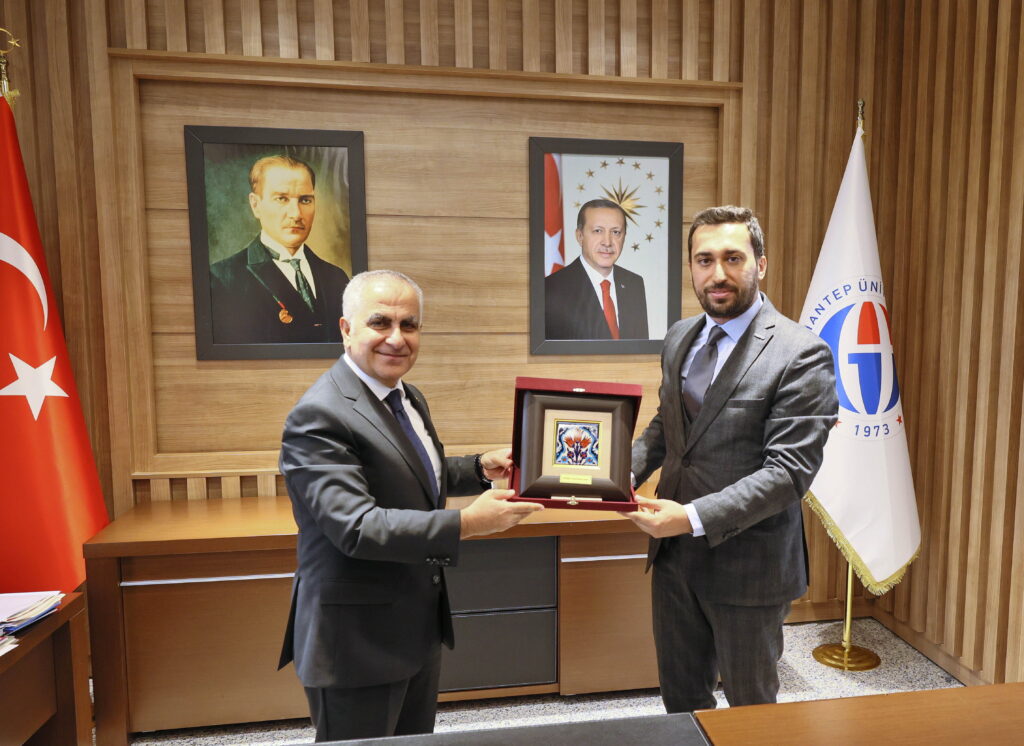 MÜSİAD Gaziantep Şube Başkanı Furkan Özdurdu günün anısına Rektör Prof. Dr. Sait Mesut Doğan’a hediye takdim etti.