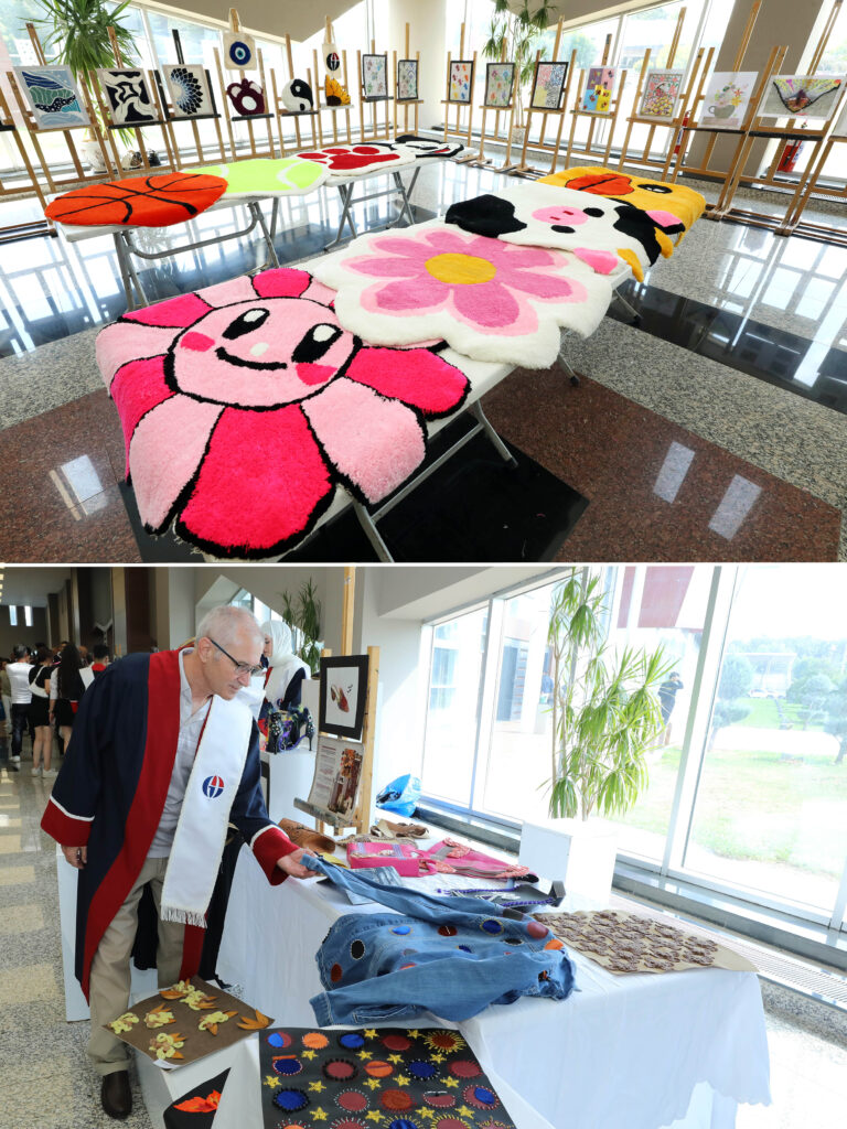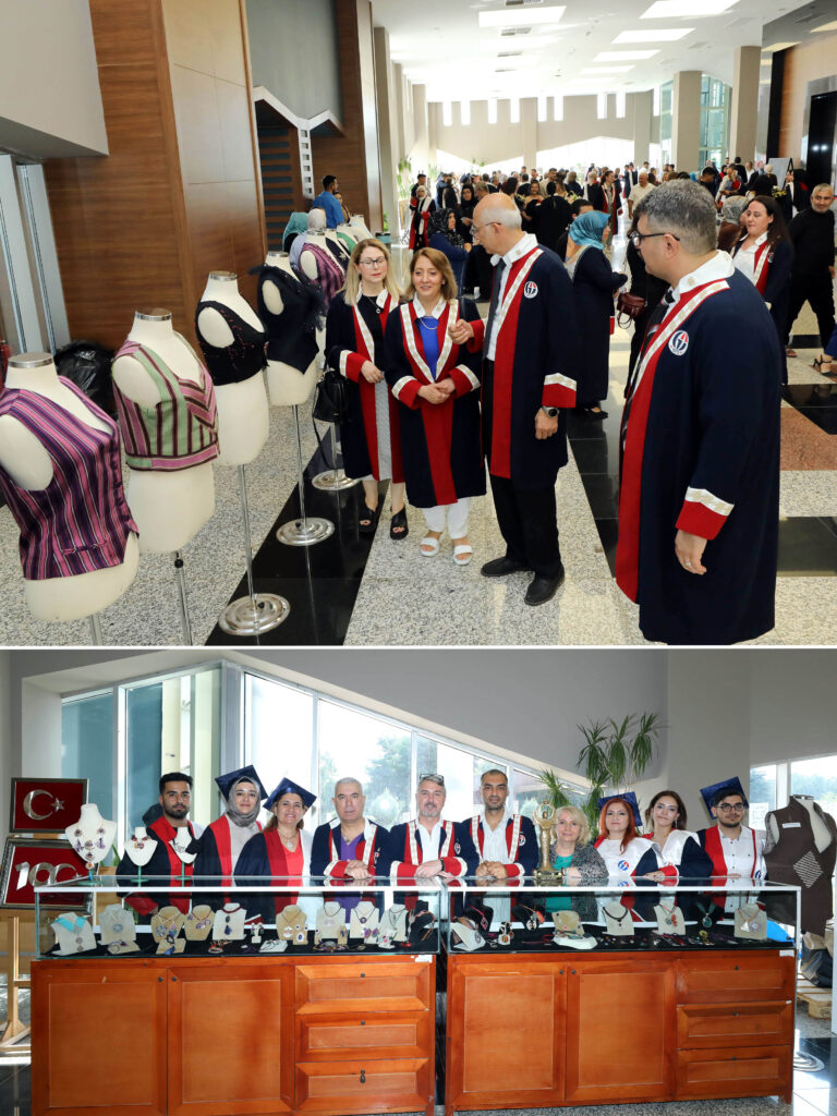 Tören öncesinde öğrencilerin dönem boyunca yürüttüğü uygulamalı çalışmaların yer aldığı sergi, davetliler tarafından ilgiyle gezildi.