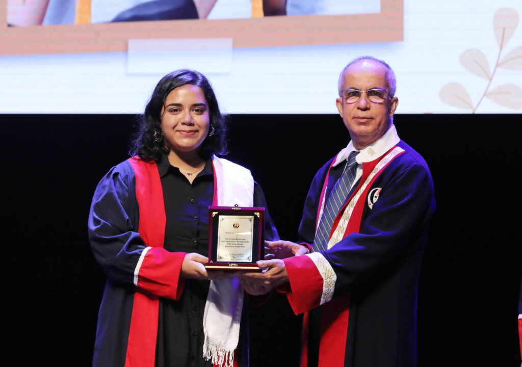 Mezun öğrenciler adına konuşan Naci Topçuoğlu Meslek Yüksekokulu dönem Birincisi Işıl Yağmur Kelkoçoğlu ise eğitim sürecinde desteklerinden dolayı ailesine, eğitmenlerine ve arkadaşlarına teşekkür etti.