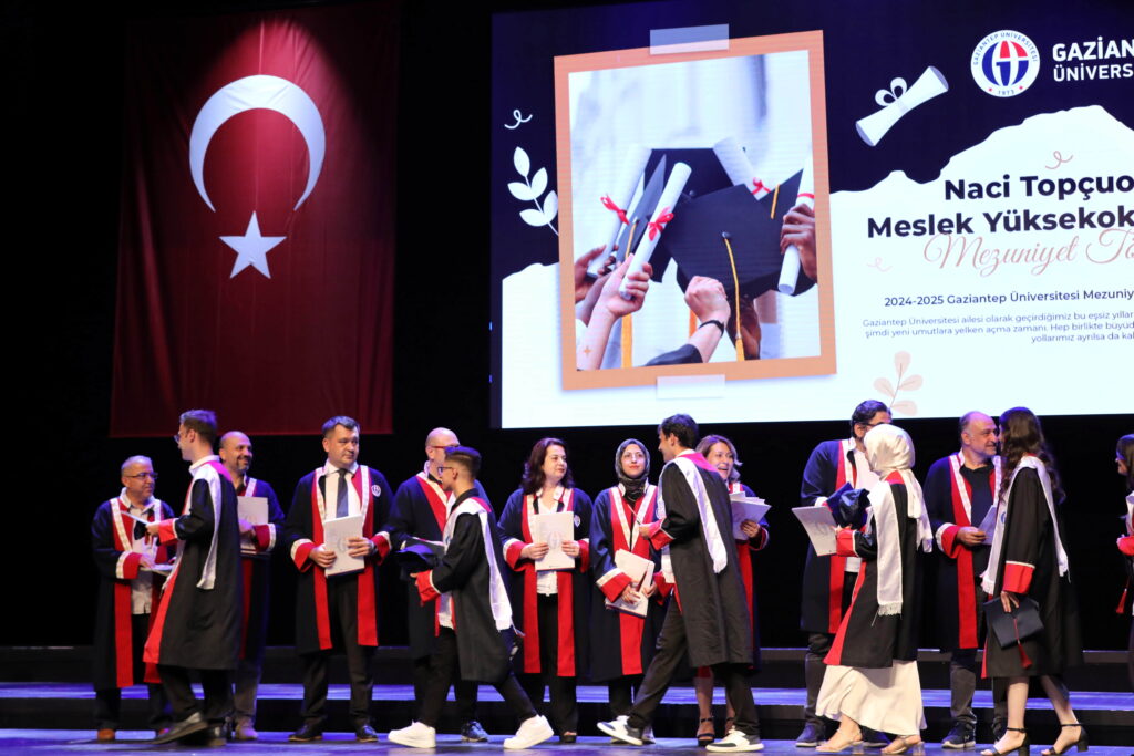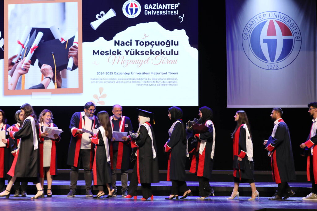 Gaziantep Üniversitesi (GAÜN) Naci Topçuoğlu Meslek Yüksekokulu, 16’inci dönem mezunlarını coşkuyla uğurladı. Törende, mezun olan öğrenciler gurur ve heyecan içinde diplomalarını aldı.