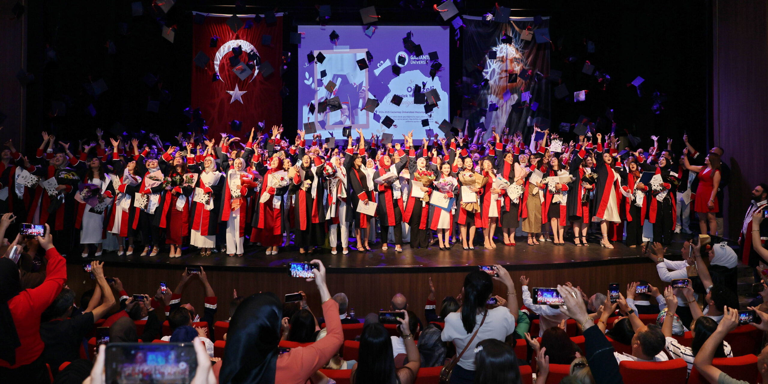Gaziantep Üniversitesi (GAÜN) Turizm Fakültesi 2024-2025 eğitim-öğretim yılı sonunda eğitimlerini başarıyla tamamlayan öğrenciler mezun olmanın sevincini yaşadı. GAÜN Atatürk Kültür Sahnesi’nde gerçekleşen mezuniyet töreninin açılışında konuşan GAÜN Rektör Yardımcısı Prof. Dr. Fahrettin Göğüş, mezun öğrencileri tebrik ederek, sağlık, mutluluk ve başarı dolu bir gelecek diledi. Prof. Dr. Göğüş konuşmasının devamında, “Yolunuz açık olsun. Başarılarınız daim, emeğiniz kıymetli, lezzetiniz her zaman fark edilir…