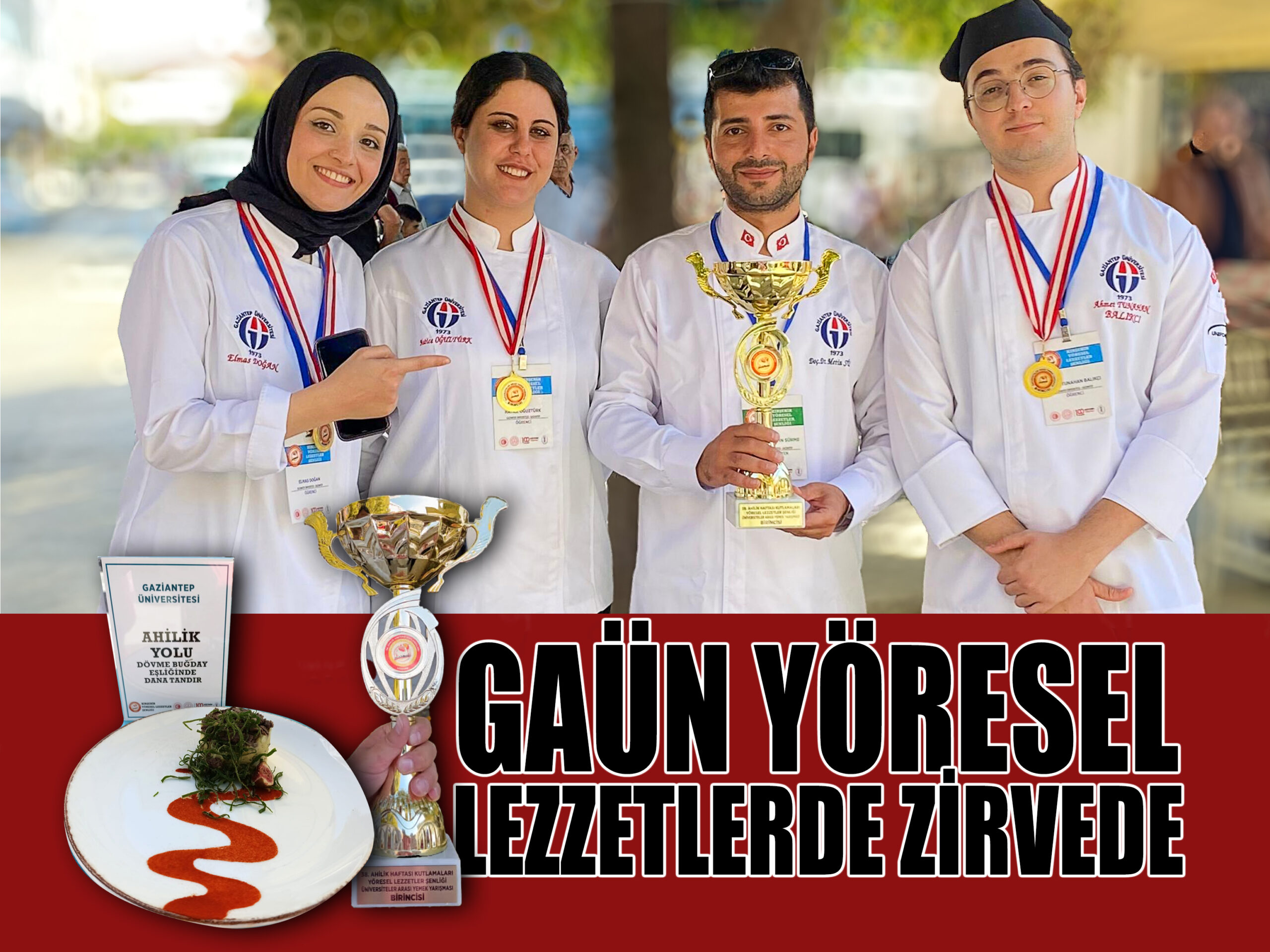 Gaziantep Üniversitesi (GAÜN) Gastronomi ve Mutfak Sanatları Bölümü öğrencileri, 38. Ahilik Haftası etkinlikleri kapsamında Kırşehir’de düzenlenen “Üniversiteli Şeflerden Kırşehir Yöresel Lezzetleri” temalı üniversitelerarası yemek yarışmasında birinci oldu. Kırşehir Valiliği himayesinde ve Kırşehir Ahi Evran Üniversitesi ev sahipliğinde Cacabey Meydanı’nda gerçekleştirilen yarışmaya Türkiye’nin yedi farklı bölgesinden üniversiteler katıldı. Afyon Kocatepe Üniversitesi, Artvin Çoruh Üniversitesi, Bitlis Eren Üniversitesi, Burdur Mehmet Akif Ersoy…