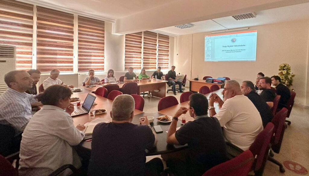 Gaziantep Üniversitesi (GAÜN) Nizip Meslek Yüksekokulu’nda (MYO) 2025-2026 Eğitim-Öğretim Yılı Akademik Kurul Toplantısı, tüm akademik personelin katılımıyla Nizip MYO Müdürü Doç. Dr. Mevlüt Kara başkanlığında gerçekleştirildi.