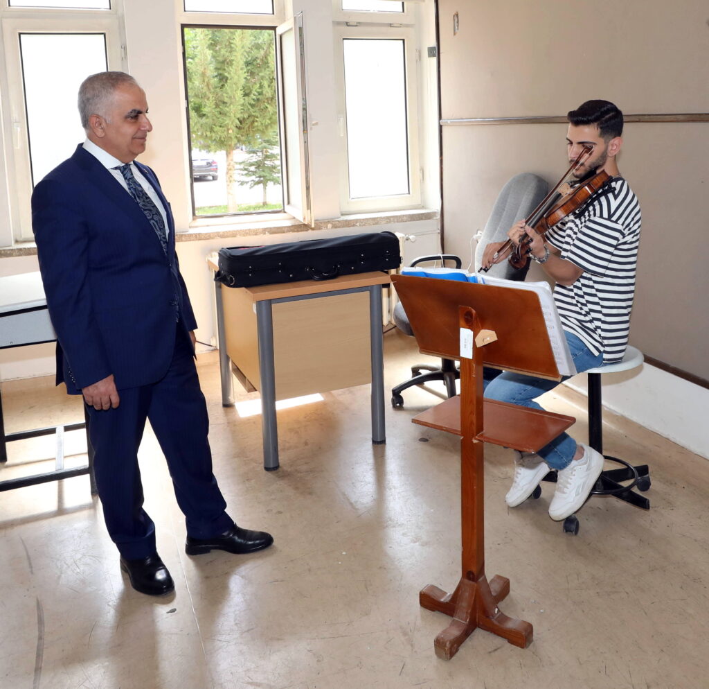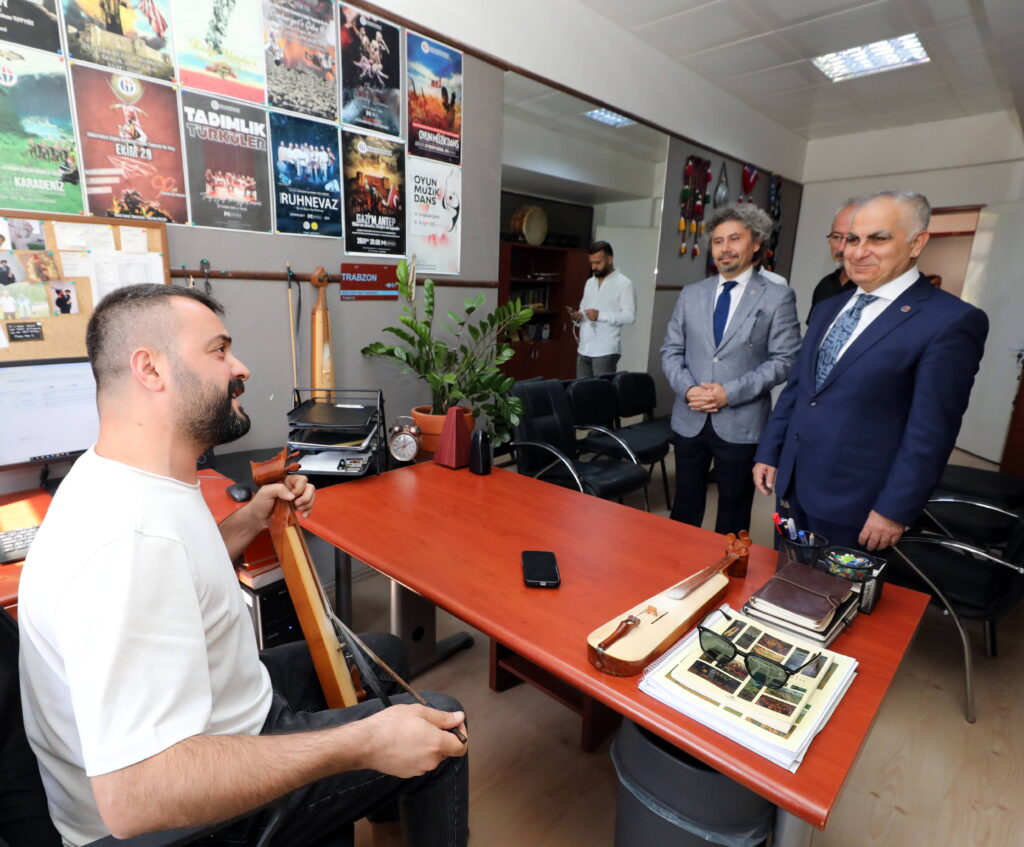 Toplantının ardından Rektör Prof. Dr. Sait Mesut Doğan, TMDK bünyesindeki eğitim salonları ile çalgı yapım atölyesini gezerek yürütülen çalışmalara ilişkin bilgi aldı. Ziyareti sırasında, TMDK Öğretim Görevlisi Mustafa Balçın’ın icra ettiği Karadeniz kemençesi dinletisini dinleyen Doğan, ardından konservatuvar öğrencilerinin sunduğu keman dinletisini de ilgiyle takip etti.