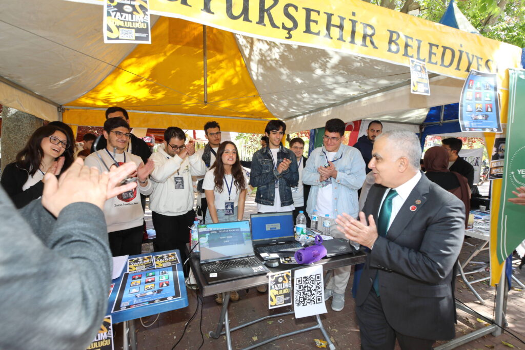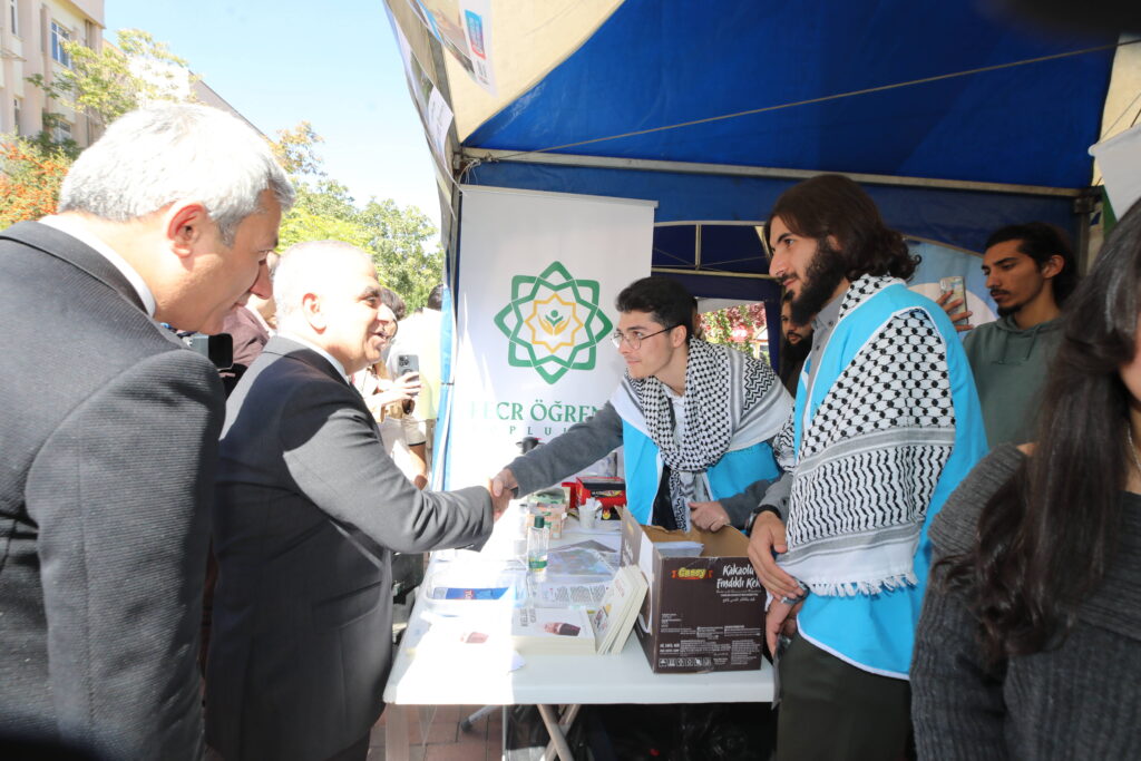 Etkinlik alanını ziyaret eden GAÜN Rektörü Prof. Dr. Sait Mesut Doğan, öğrenci topluluklarının stantlarını gezerek öğrencilerle sohbet etti, toplulukların çalışmaları hakkında bilgi aldı.