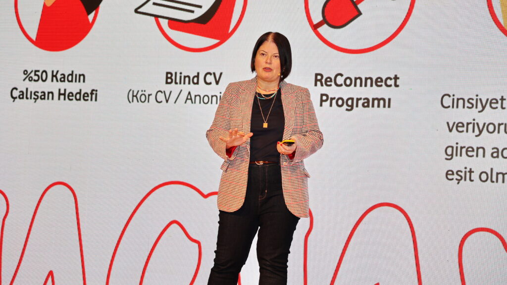 Konferansa konuşmacı olarak katılan Vodafone Türkiye yetkilisi Bahar Karaoğlan, şirketin çalışma hayatındaki vizyon ve misyonunu, insan kaynakları politikalarını ve genç yeteneklere sundukları fırsatları katılımcılarla paylaştı. Karaoğlan, Vodafone Türkiye’de kadın çalışan oranının yaklaşık yüzde 50 seviyesinde olduğunu belirterek, şirketin çeşitliliğe ve kapsayıcılığa verdiği önemi vurguladı.
