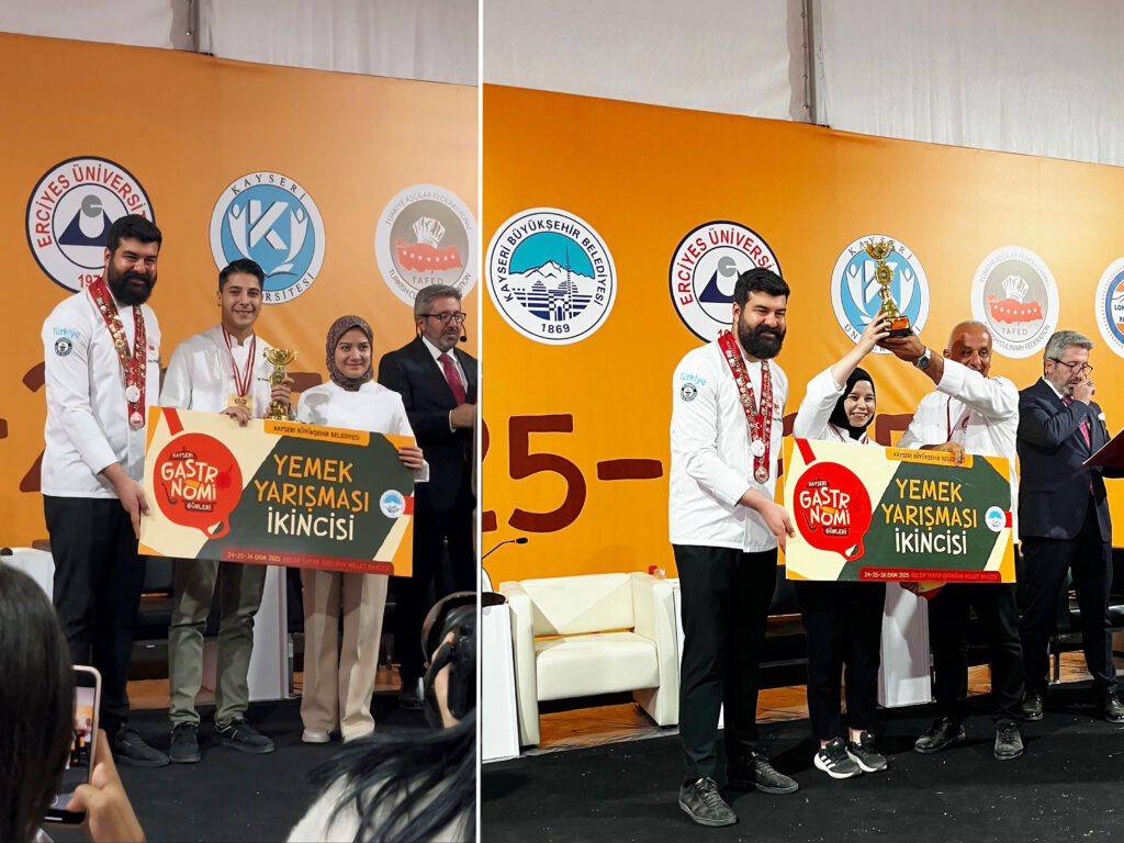 Festival kapsamında gerçekleştirilen Genç Yetenekler “Pastırma Temalı Ana Yemek” Yarışması ve Genç Yetenekler “Kayseri Yöresi Modern Ana Yemek” Yarışması’nda GAÜN’ü temsil eden öğrenciler, özgün sunumları ve lezzetleriyle jüri üyelerinden tam not alarak ikincilik ödülünü kazandı.