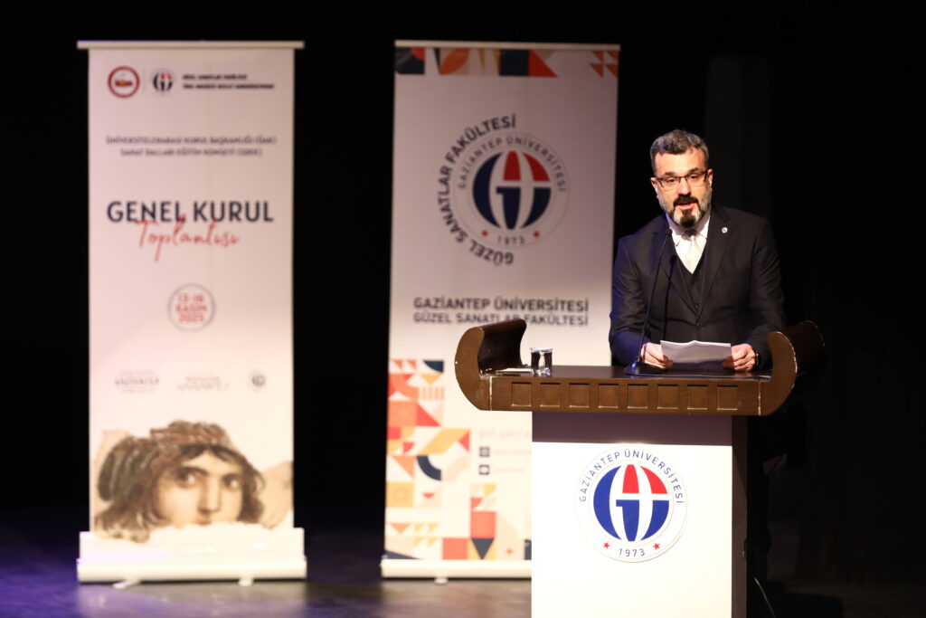 Açılış konuşmasını yapan GAÜN Rektör Yardımcısı Prof. Dr. Mehmet Tarakçıoğlu, bu önemli toplantıya ev sahipliği yapmaktan büyük onur duyduklarını ifade etti. Prof. Dr. Tarakçıoğlu, “Gaziantep, hem sanatçıların hem de zanaatkarların şehri olarak bilinir. Tarih, kültür ve gastronomi ile zenginleşmiş bu şehirde sanata dair böyle bir etkinliğin düzenlenmesi gerçekten büyük bir anlam taşıyor. Sanat, bir ülkenin gelişmesi için vazgeçilmezdir. Üniversitemizde düzenlenen bu toplantının, sanatı daha geniş kitlelere ulaştırma yolunda önemli bir adım olduğunu düşünüyoruz. Herkese katkılarından dolayı teşekkür ediyorum.” ifadelerini kullandı.
