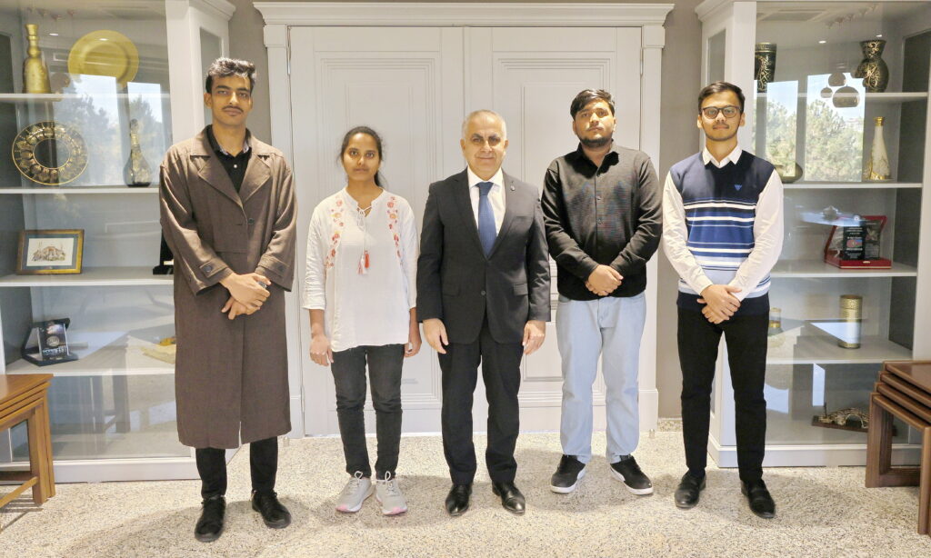 Gaziantep Üniversitesi (GAÜN) Rektörü Prof. Dr. Sait Mesut Doğan, üniversitede eğitim gören Hindistanlı öğrencileri makamında kabul etti.