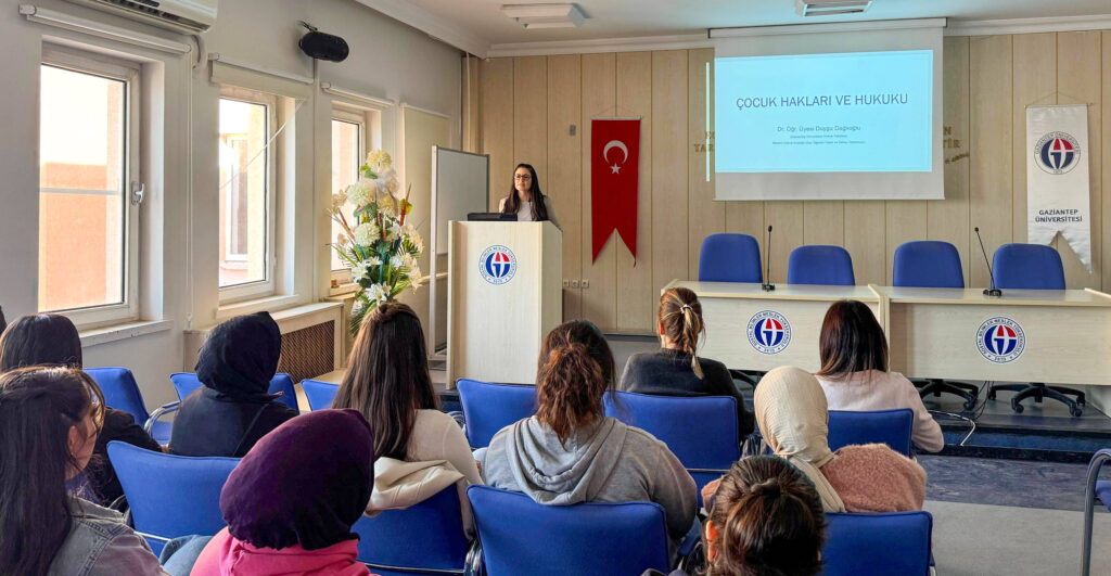 Gaziantep Üniversitesi (GAÜN) Sosyal Bilimler Meslek Yüksekokulu (MYO) tarafından 20 Kasım Dünya Çocuk Hakları Günü kapsamında “Çocuk Hakları ve Hukuku” başlıklı konferans düzenlendi. Sosyal Bilimler MYO Konferans Salonu’nda gerçekleştirilen etkinliğe, GAÜN Hukuk Fakültesi Dr. Öğretim Üyesi Duygu Dağlıoğlu konuşmacı olarak katıldı.