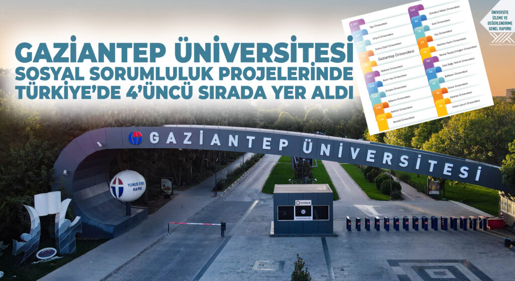 Gaziantep Üniversitesi (GAÜN), Yükseköğretim Kurulu (YÖK) tarafından yayımlanan Üniversite İzleme ve Değerlendirme Genel Raporu-2024 verilerine göre, kurumun kendi yürüttüğü sosyal sorumluluk projeleri sayısında Türkiye genelinde 4’üncü sırada yer aldı.