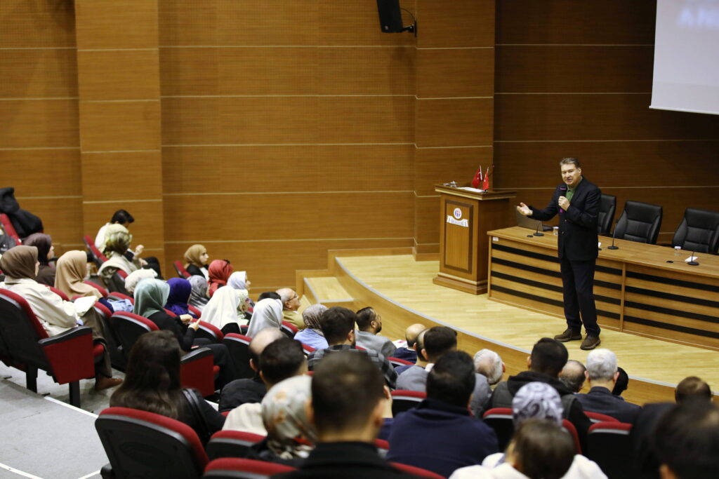 Konferansa konuşmacı olarak katılan Prof. Dr. Celal Türer, felsefi düşüncenin derinliklerine inerek, akıl ve duygu arasındaki ilişkiyi, olgusal yargılar ile değersel yargılar arasındaki farkları ele aldı. Prof. Dr. Türer, konferansında özellikle akli yargı ve hissi yargıların felsefede nasıl şekillendiği üzerinde durarak, insanların neden “olan”dan “olması gereken”e doğru bir çıkarsama yapma çabasında olduklarını tartıştı.