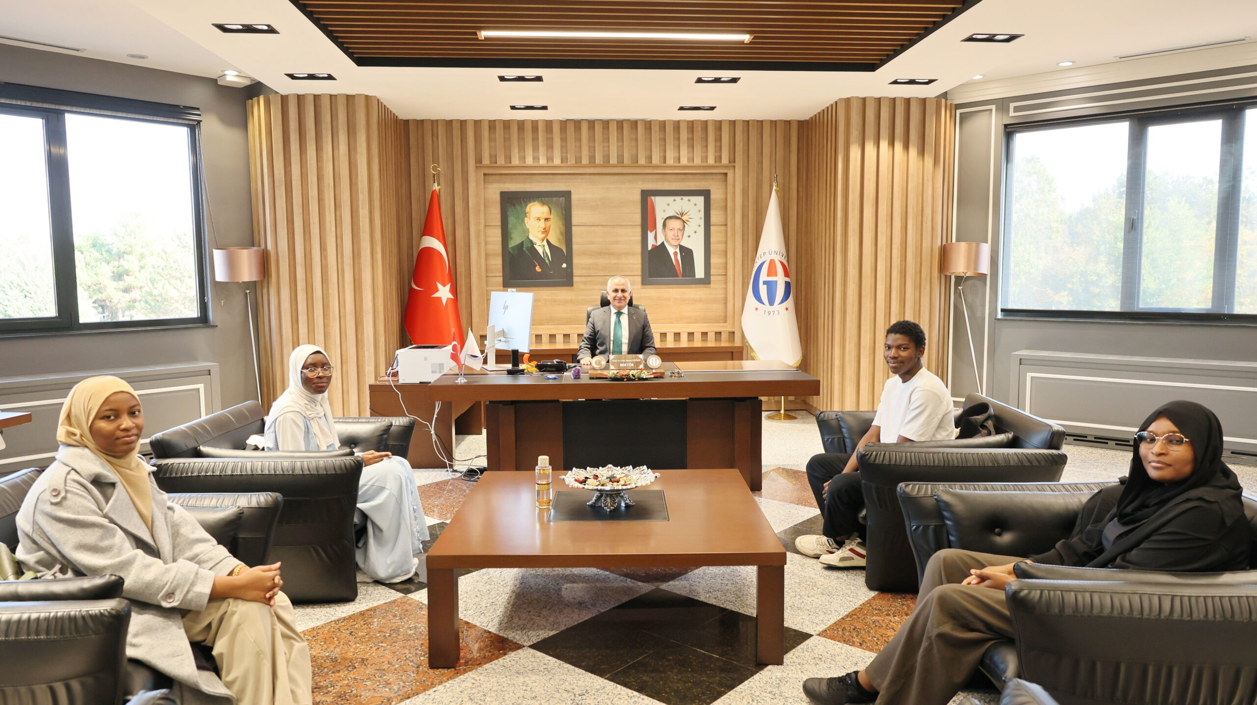 Gaziantep Üniversitesi (GAÜN) Rektörü Prof. Dr. Sait Mesut Doğan, uluslararası öğrenci buluşmaları kapsamında üniversitede öğrenim gören Etiyopyalı ve Nijer’li öğrencilerle bir araya geldi. Rektörlük makamında gerçekleştirilen görüşmeye; Nijer’den Tıp Fakültesi öğrencisi Bouchra Youssoufa Soumana, Mühendislik Fakültesi öğrencisi Hadiza İbrahim İssaka ve İktisadi ve İdari Bilimler Fakültesi öğrencisi Rachida Mamane İssoufou ile Etiyopya’dan Tıp Fakültesi öğrencisi Amir Ahmed Seid, İktisadi ve…