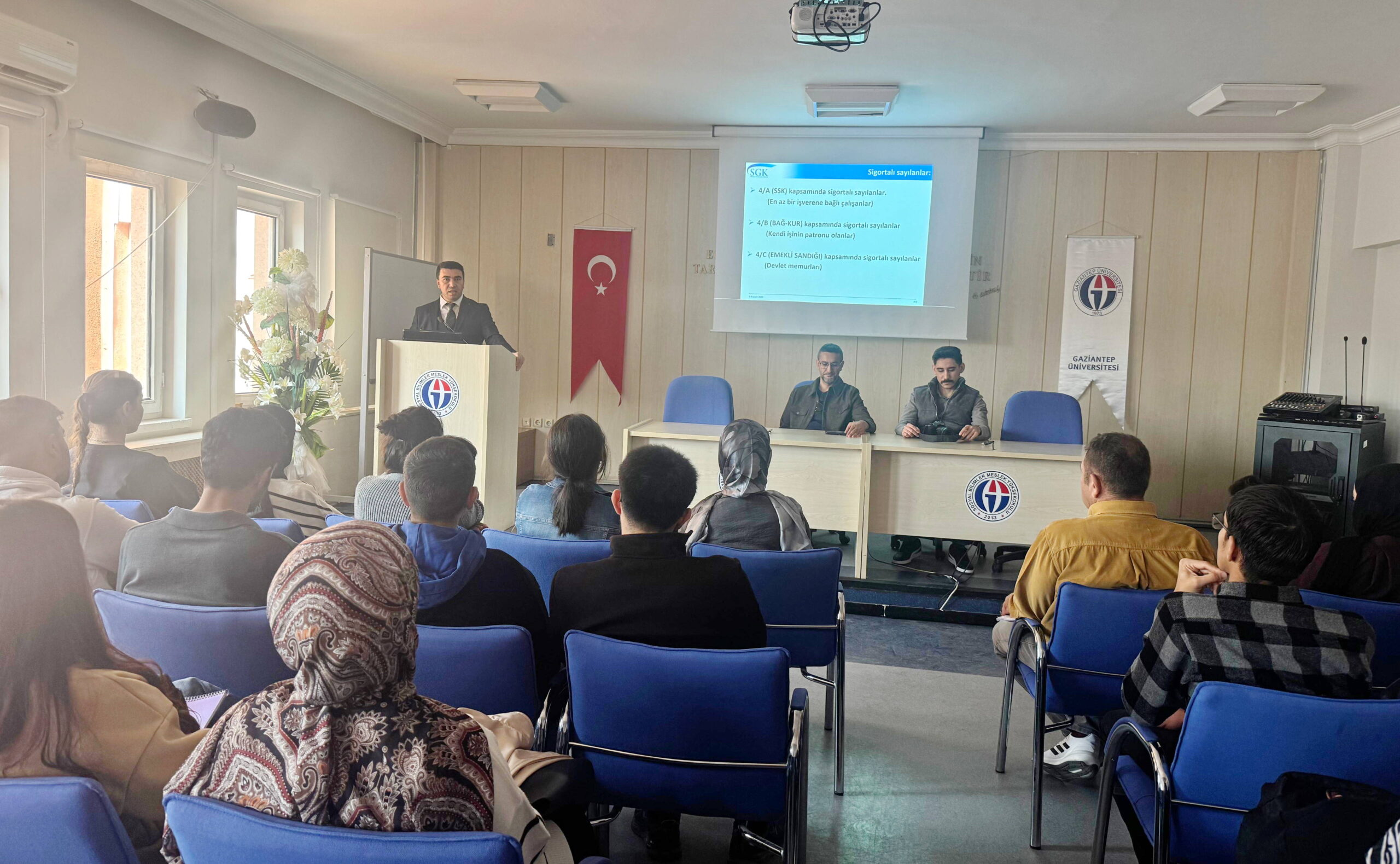 Gaziantep Üniversitesi (GAÜN) Sosyal Bilimler Meslek Yüksekokulu tarafından “Kayıt Dışı İstihdamdan Teşvikli Girişime: Gençler İçin Sosyal Güvence Haritası” başlıklı konferans düzenlendi. Şahinbey Sosyal Güvenlik Merkez Müdür Yardımcısı Yusuf Ünlü’nün konuşmacı olarak katıldığı etkinlik, Sosyal Bilimler Meslek Yüksekokulu Toplantı Salonu’nda gerçekleştirildi. Konferansta Sosyal Güvenlik Sistemi, 5510 Sayılı Sosyal Sigortalar ve Genel Sağlık Sigortası Kanunu ile gençlerin istihdam süreçlerinde sosyal güvenceye erişimi…