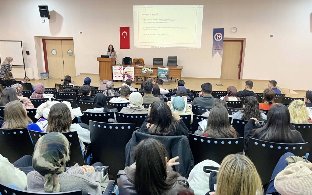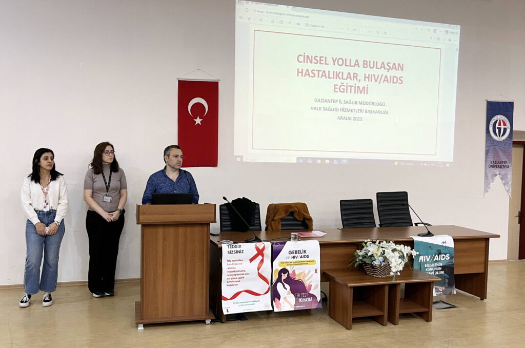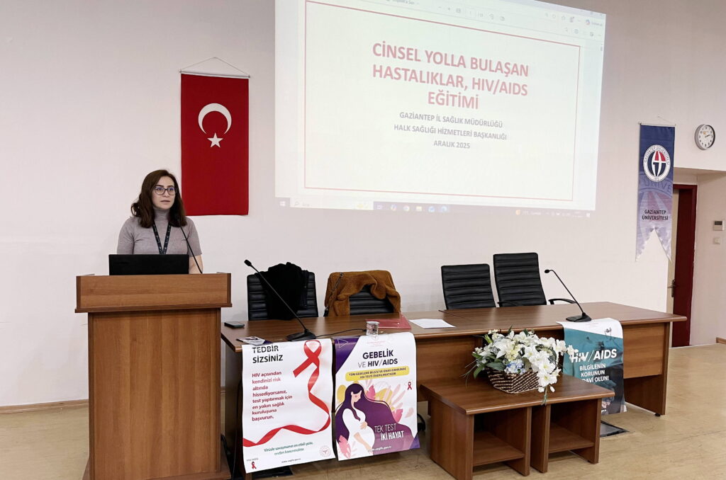 1 Aralık Dünya AIDS Günü kapsamında, HIV/AIDS konusunda toplumda farkındalık oluşturmak, kamuoyunu bilgilendirmek ve duyarlılığı artırmak amacıyla Gaziantep Üniversitesi (GAÜN) Eğitim Fakültesi Konferans Salonu’nda öğrencilere yönelik bilgilendirme etkinliği düzenlendi. Etkinlikte, hastalığın bulaşma yolları, korunma yöntemleri ve kişisel önlemler hakkında bilgi paylaşımı yapıldı.