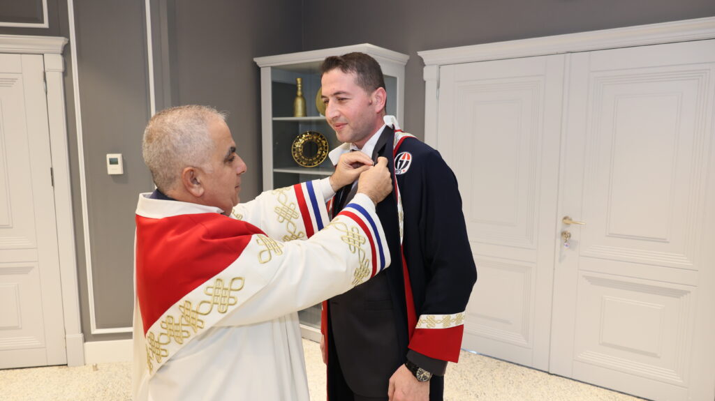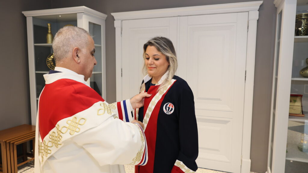 Törende, akademik unvanları yükselen öğretim üyelerine rozetleri GAÜN Rektörü Prof. Dr. Sait Mesut Doğan tarafından takdim edilirken, cübbeleri Meslek Yüksekokulu Müdürü Prof. Dr. Hüseyin Bozkurt tarafından giydirildi.