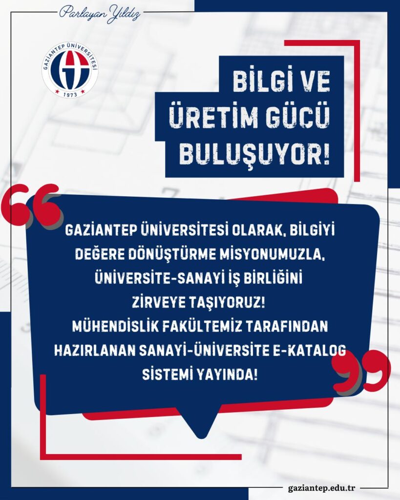 Gaziantep Üniversitesi (GAÜN), üniversite–sanayi–toplum iş birliğini güçlendirecek önemli bir adım atarak Mühendislik Fakültesi tarafından geliştirilen “Sanayi–Üniversite E-Katalog Sistemi”ni kamuoyuna duyurdu. Günümüzün hızla değişen bilimsel ve teknolojik ortamında, akademik bilgi ile sanayi üretim kapasitesinin daha etkin biçimde buluşturulmasını hedefleyen sistem, kolay erişim ve doğru eşleştirme prensibiyle çalışıyor.