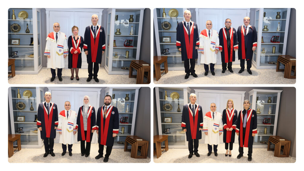 Gaziantep Üniversitesi’nde (GAÜN) çeşitli fakülte ve birimlerde akademik unvanları yükselen öğretim üyeleri için Rektörlük makamında tören düzenlendi. Törende, unvanları yükseltilen akademisyenlere rozetleri GAÜN Rektörü Prof. Dr. Sait Mesut Doğan tarafından takdim edilirken, cübbeleri ilgili fakülte dekanları ve birim amirleri tarafından giydirildi.