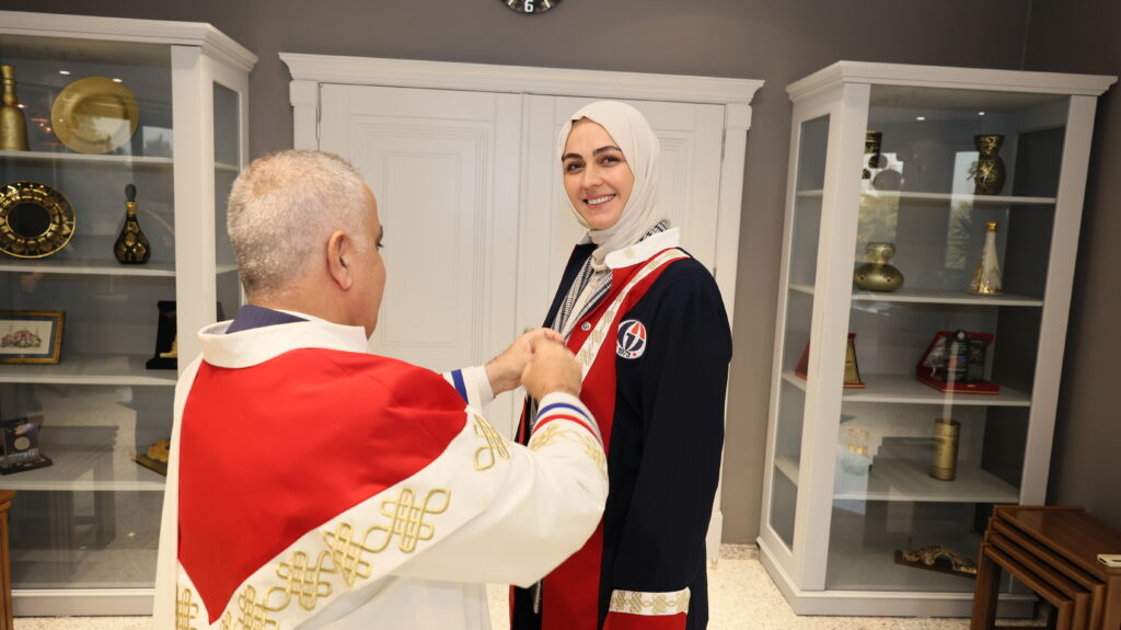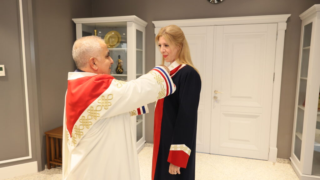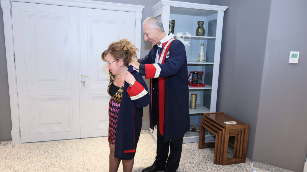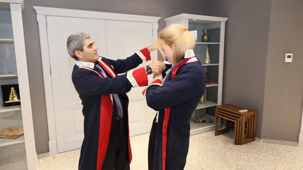 Sağlık Hizmetleri Meslek Yüksekokulu’ndan Özlem İşman (Doçent – Dişçilik Hizmetleri Bölümü) cübbesini Sağlık Hizmetleri Meslek Yüksekokulu Müdürü Doç. Dr. Mustafa Sabak’tan; Göç Enstitüsü’nden Derya Silibolatlaz Baykara (Profesör) ise cübbesini Göç Enstitüsü Müdürü Prof. Dr. Mehmet Çiçek’ten aldı.